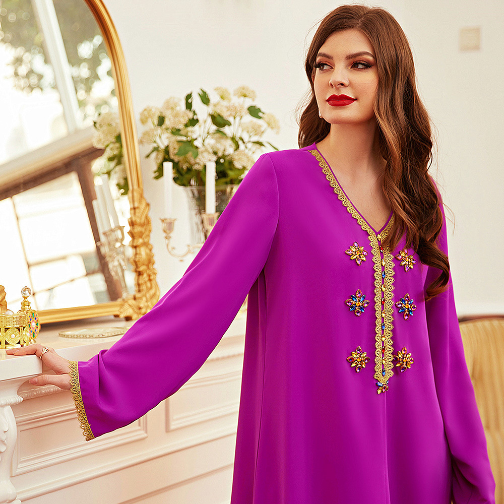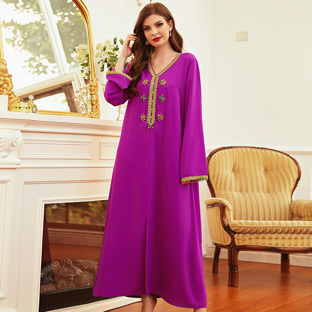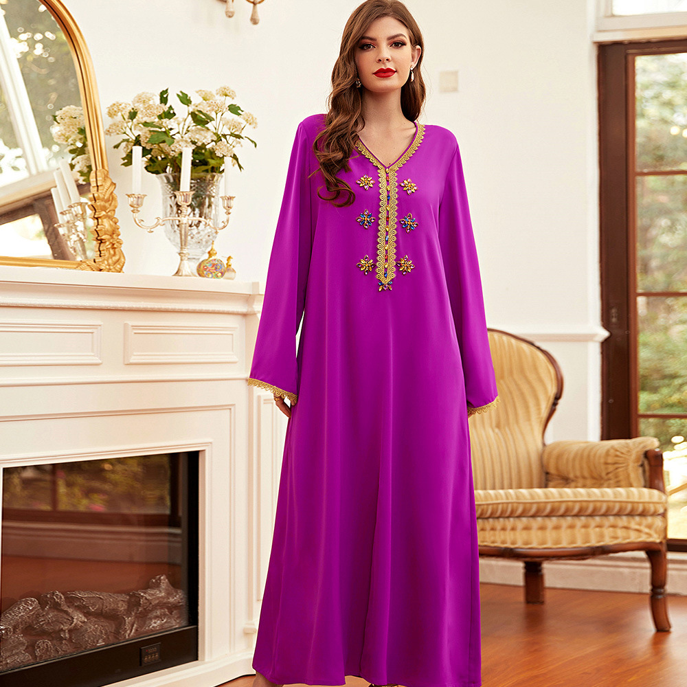 SIPO Custom Dubai Spring/Summer Dress Solid color beautifully embroidered dress gown Elegant Abaya