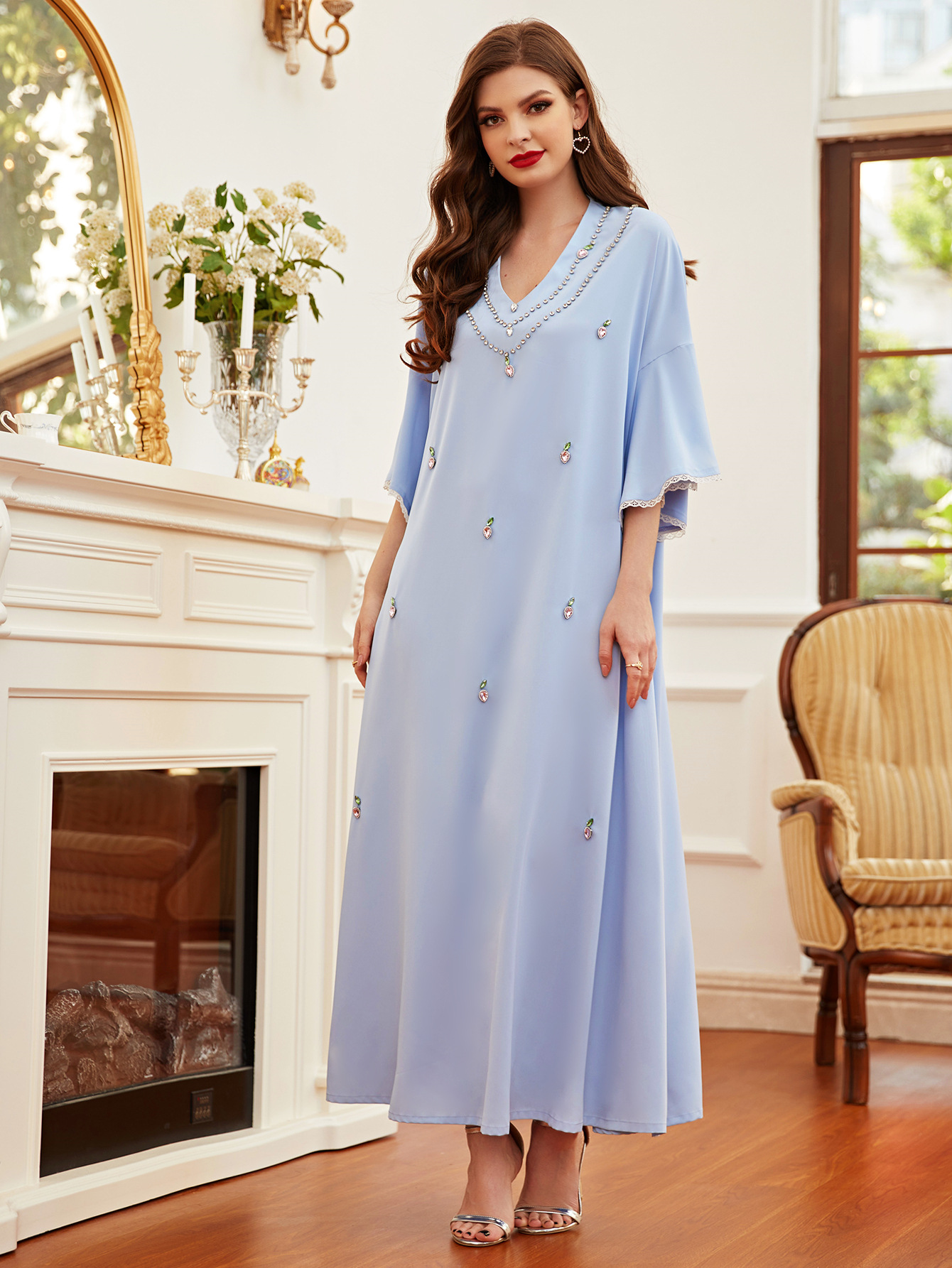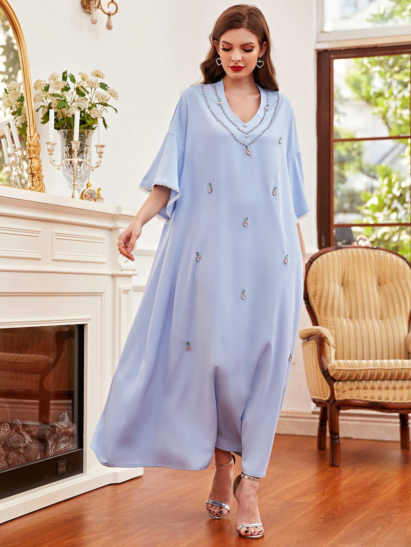 SIPO Custom Dubai Spring/Summer Dress Solid color beautifully embroidered dress gown Elegant Abaya