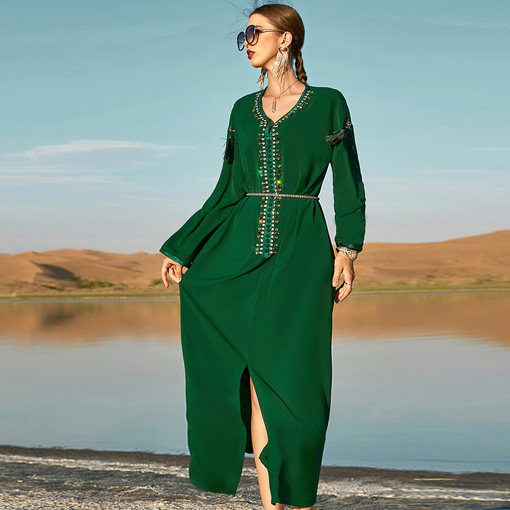 SIPO Wholesale Price New Muslim Women Dubai Beaded Middle East Cardigan Abaya Dress Muslim Women Dress