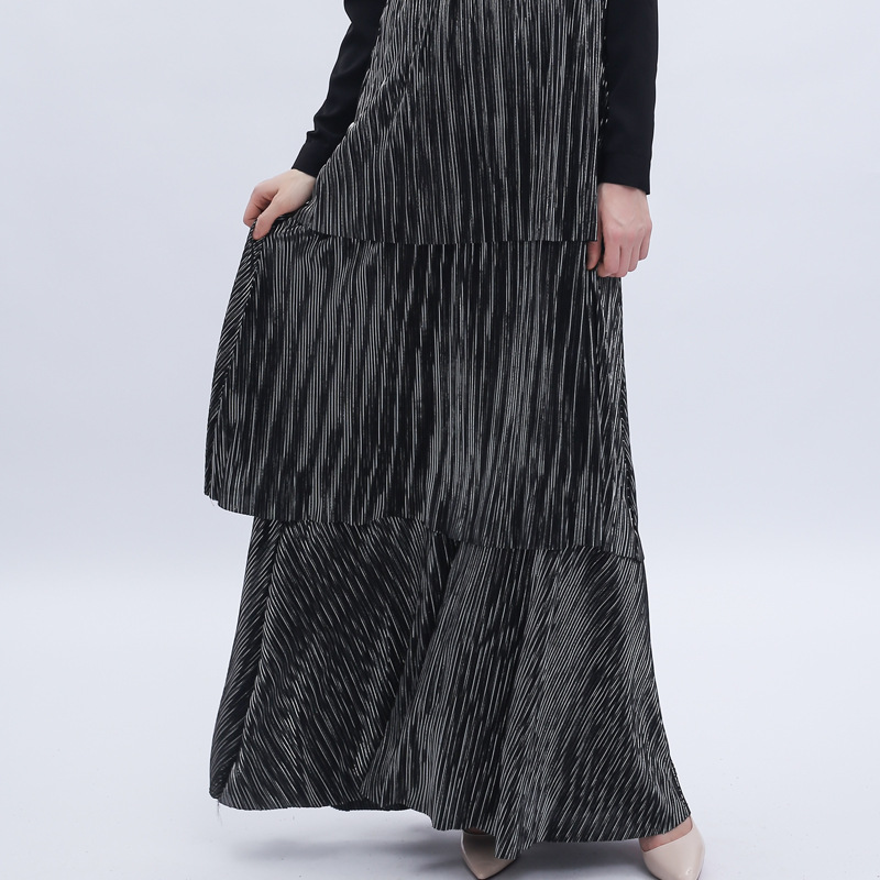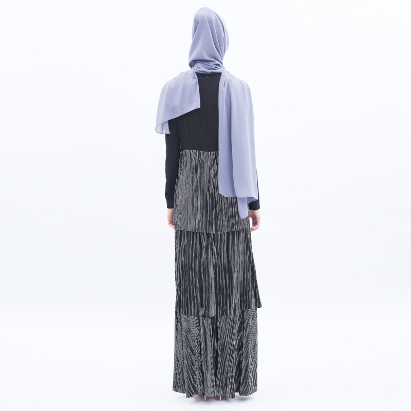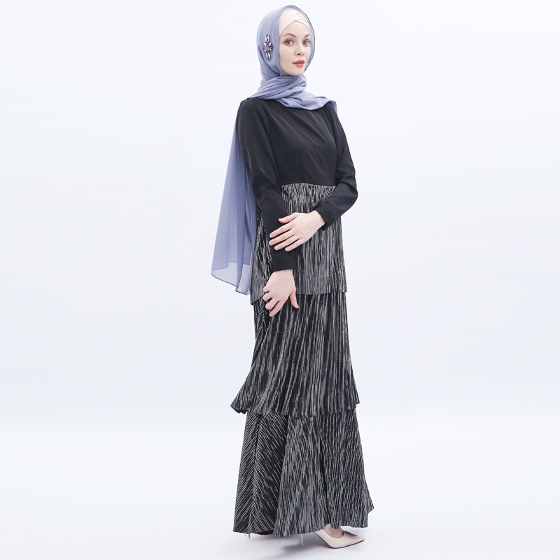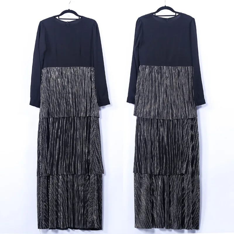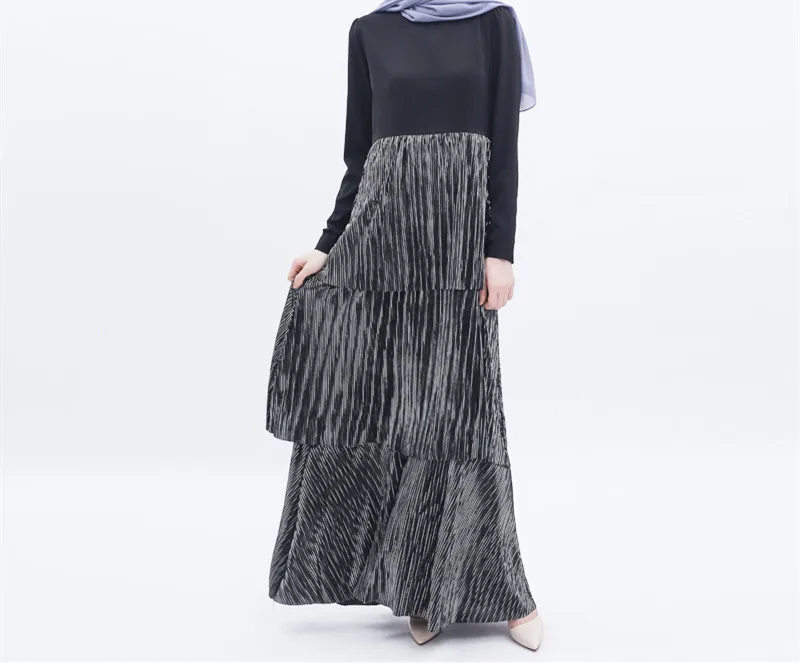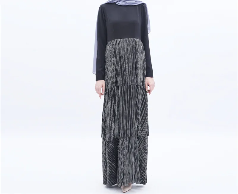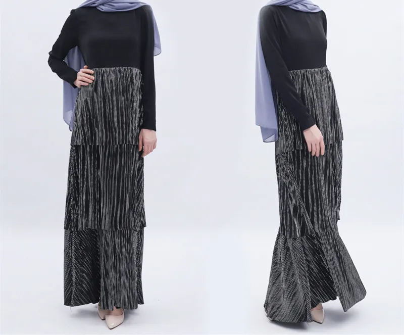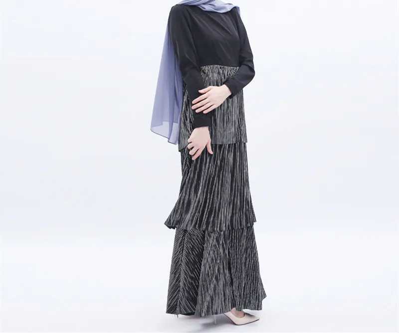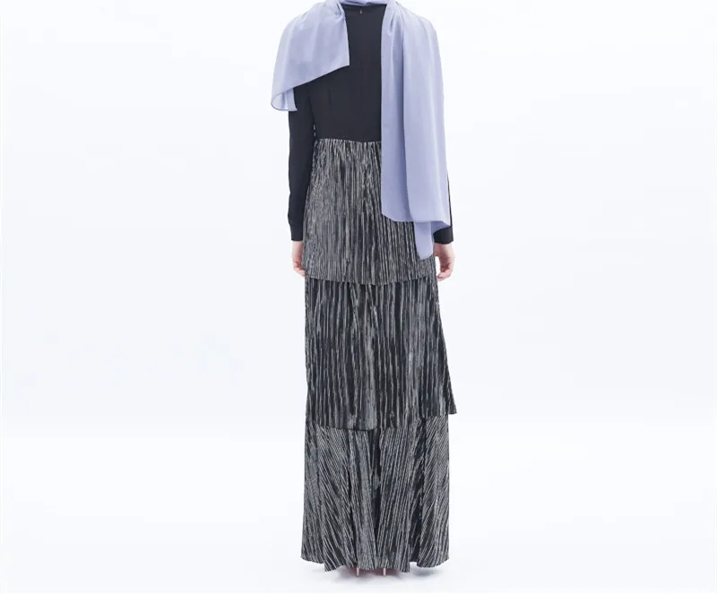 Matching Sequins Creasing High Waist Muslim Islamic Abaya Modest Dress