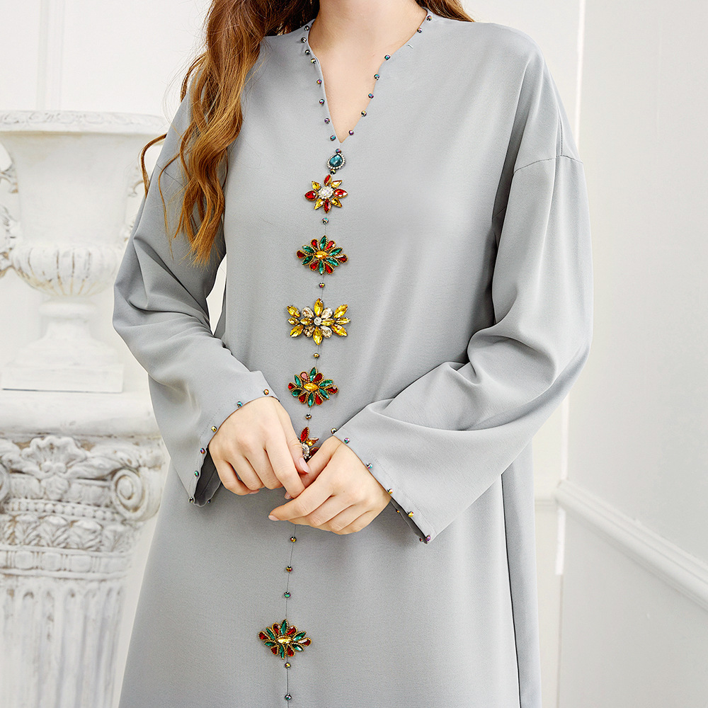 SIPO Custom Dubai Spring/Summer Dress Solid color beautifully embroidered dress gown Elegant Abaya