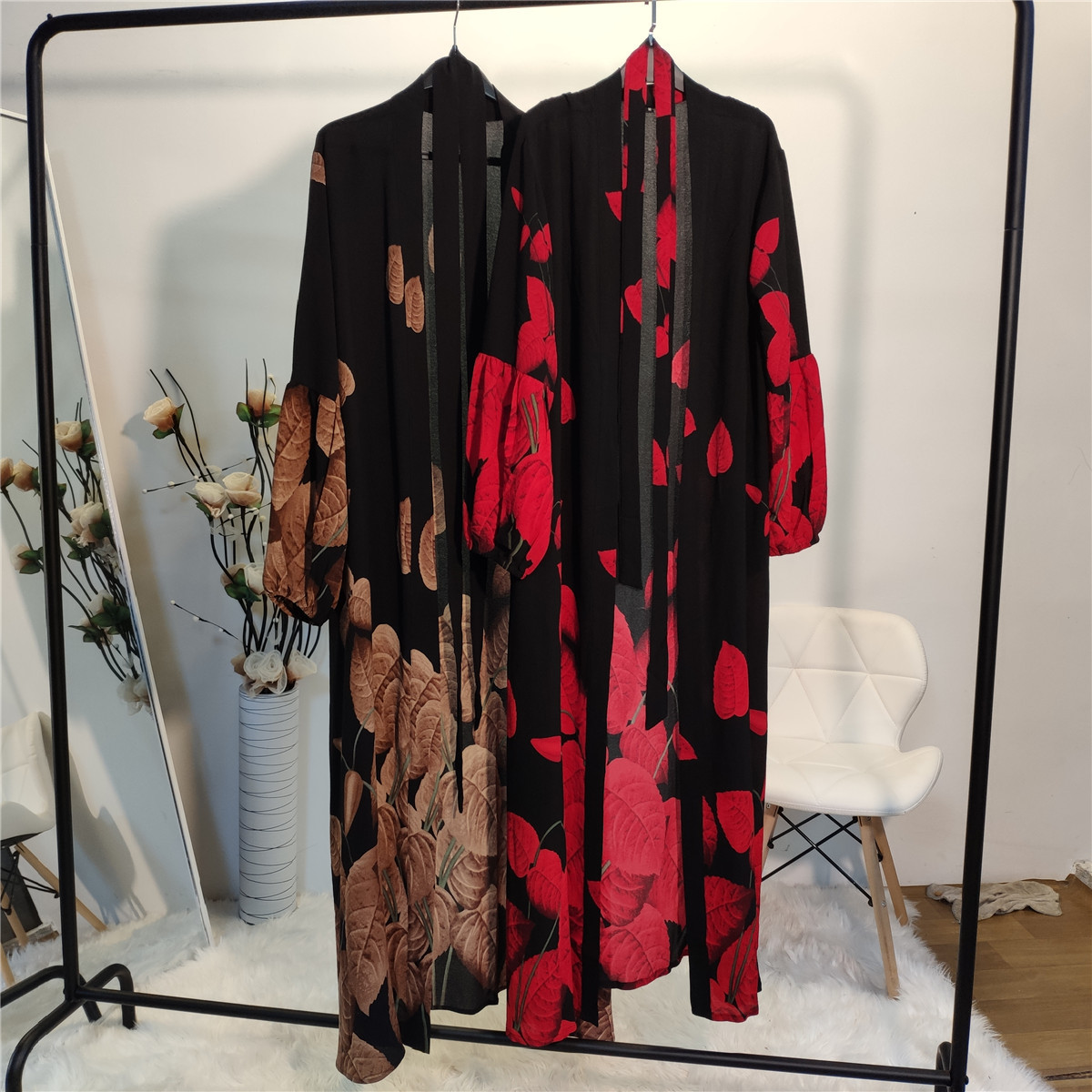 Middle Eastern Arab Print Lantern Sleeve Cardigan Muslim Modest Open Abaya
