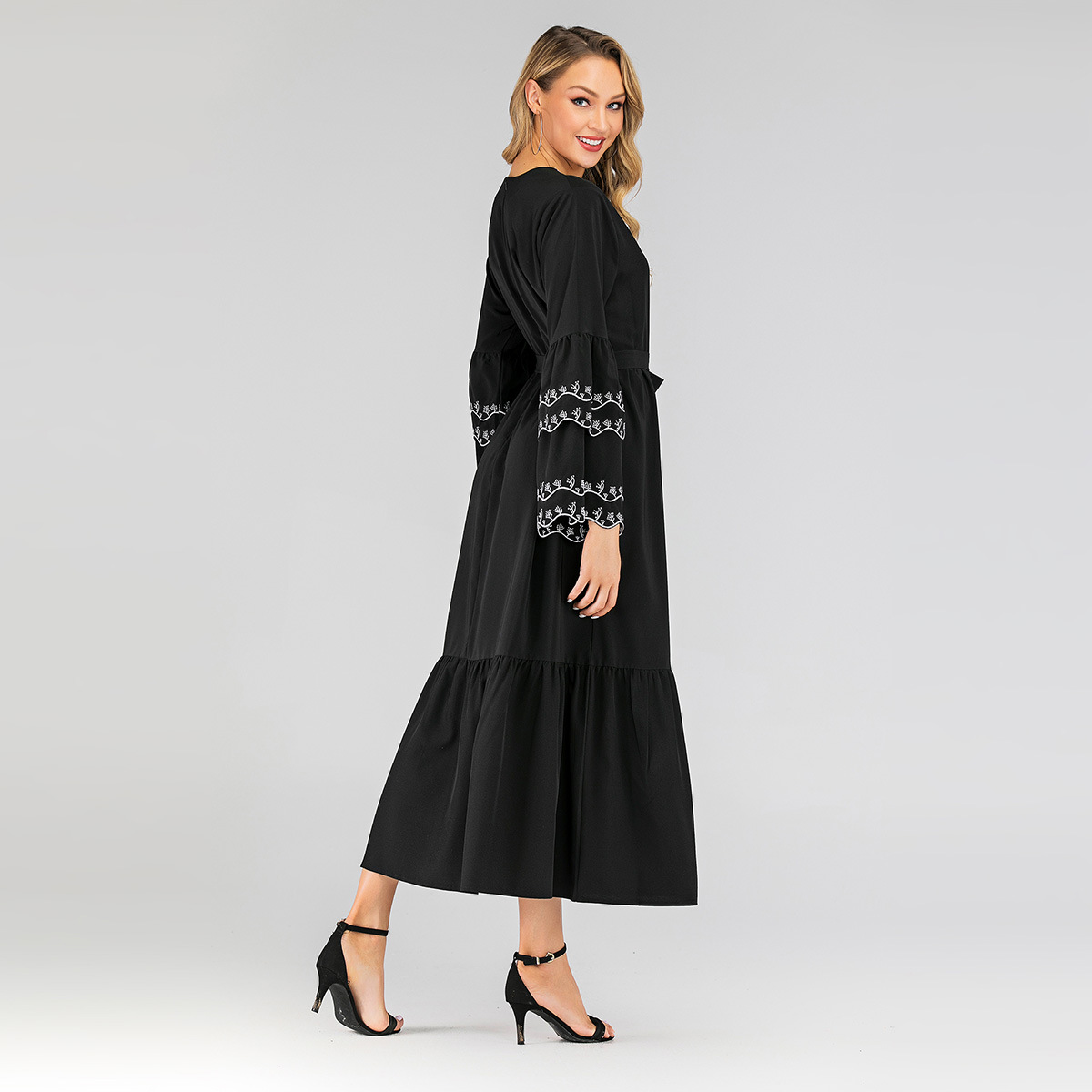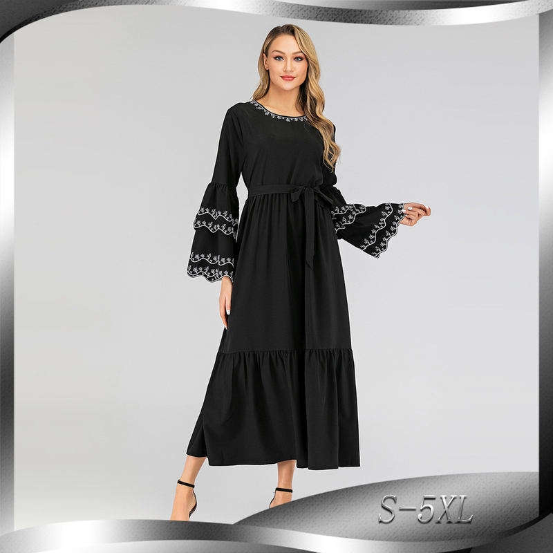You are here:Home » Products » Abaya / Maxi Dress » Middle Eastern Muslim Fashion Petal Sleeve Dress Long Sleeve Embroidered Slim Abaya