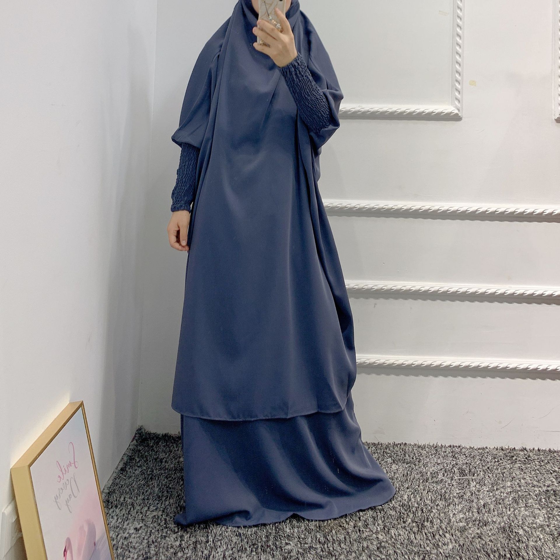 SIPO New Arrival Muslim Women Long Dress 2 Piece Prayer Abaya Set Khimar Skirt Islamic Clothing Prayer Dress
