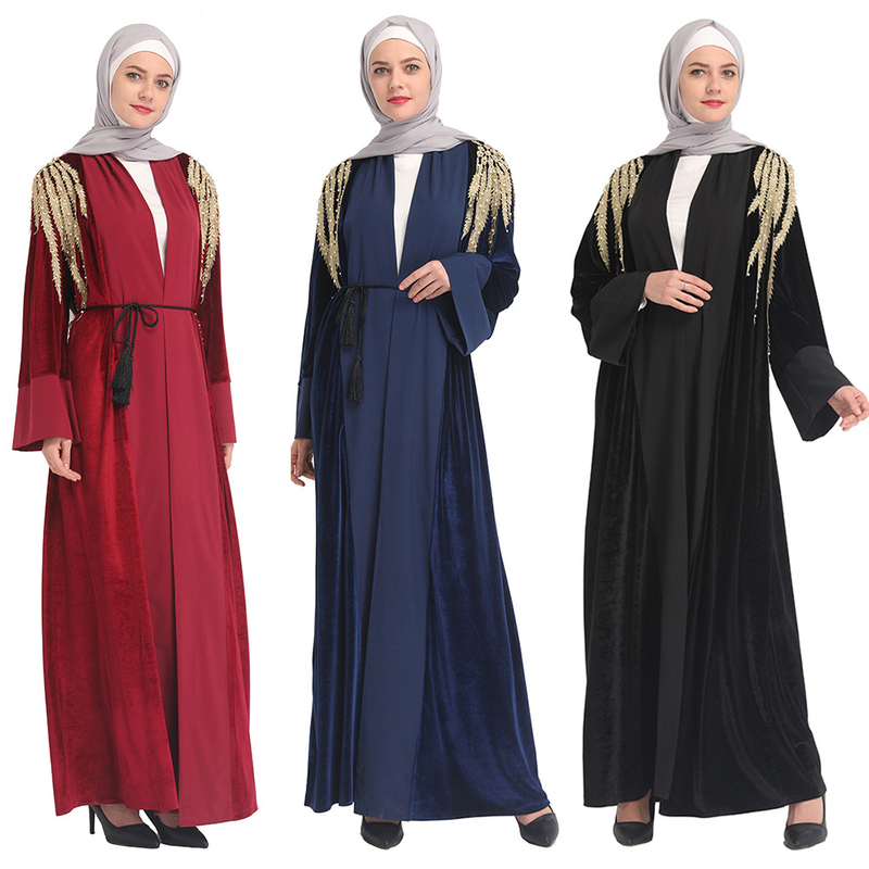 SIPO Wholesale Price New Muslim Women Dubai Beaded Middle East Cardigan Abaya Dress Muslim Women Dress