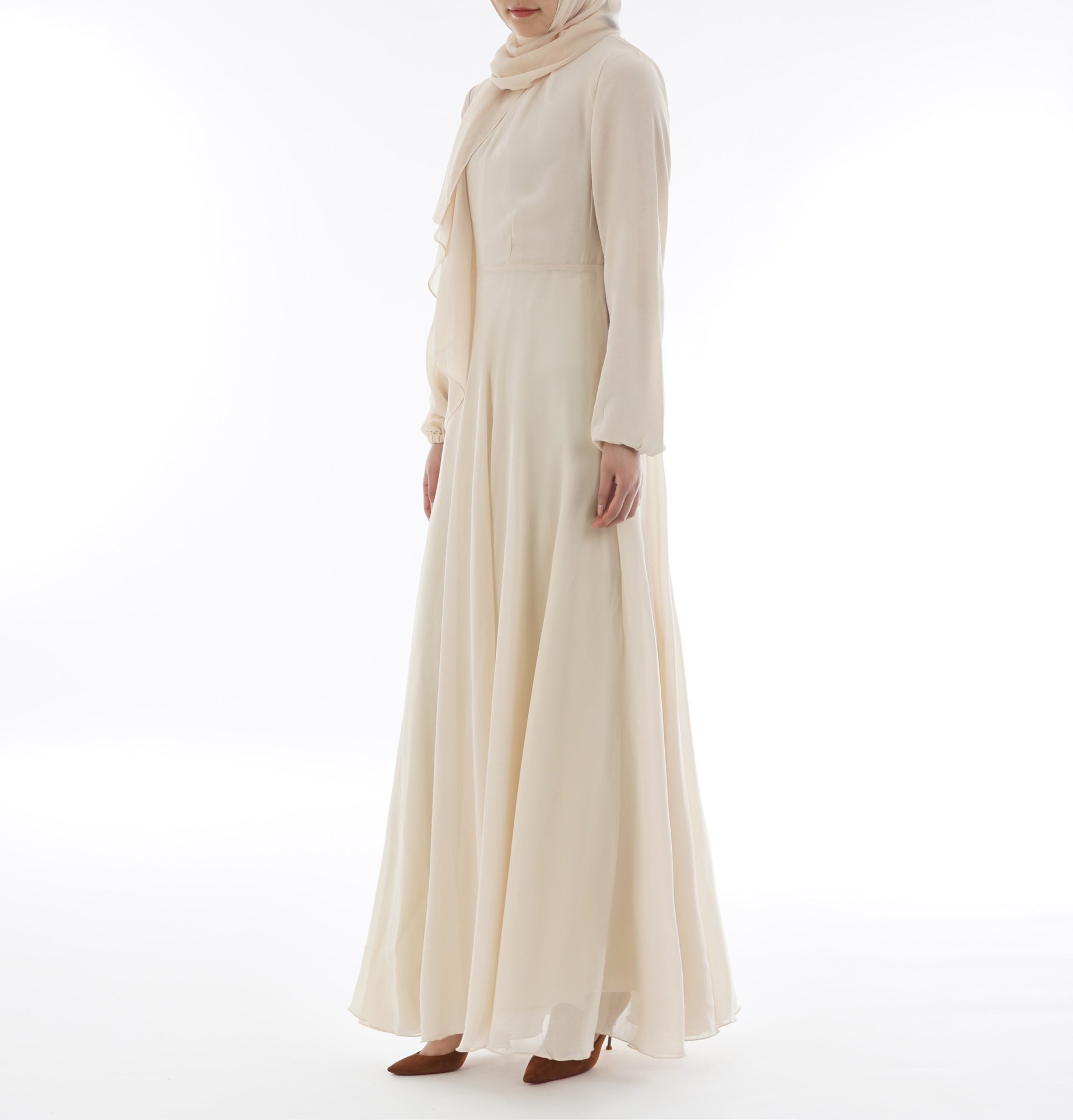 SIPO Luxury Royal Satin Closed Abaya Champagne Gold Intricate Lace with Diamante And Embellishments