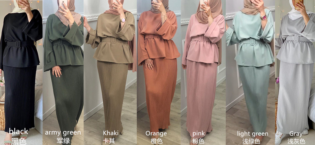 Modest Fashion Solid Color Casual New Design Dubai Middle East Muslim Lady Blouse Set