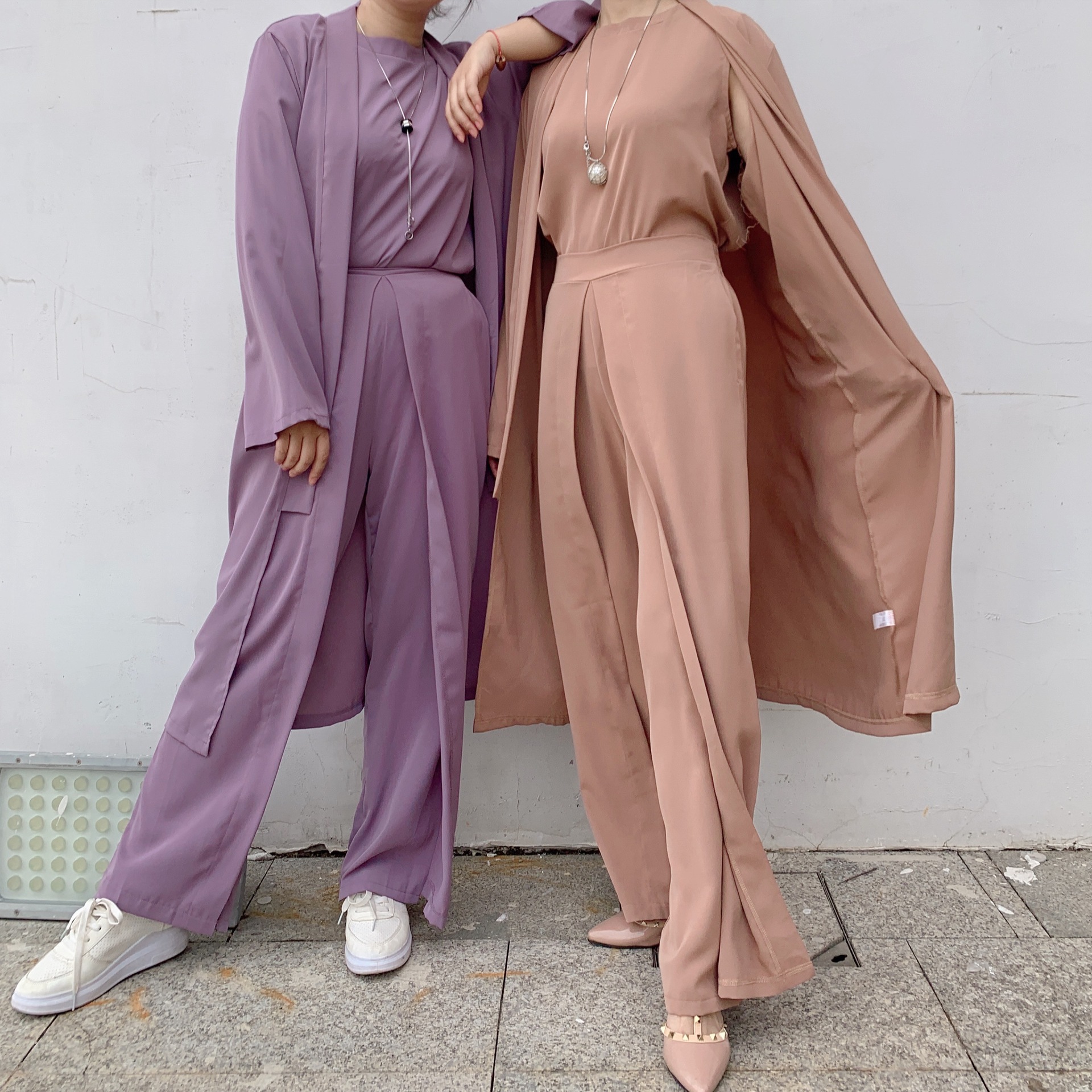 Modest Fashion Three-piece Baju Casual New Design Dubai Middle East Muslim Lady Blouse Set