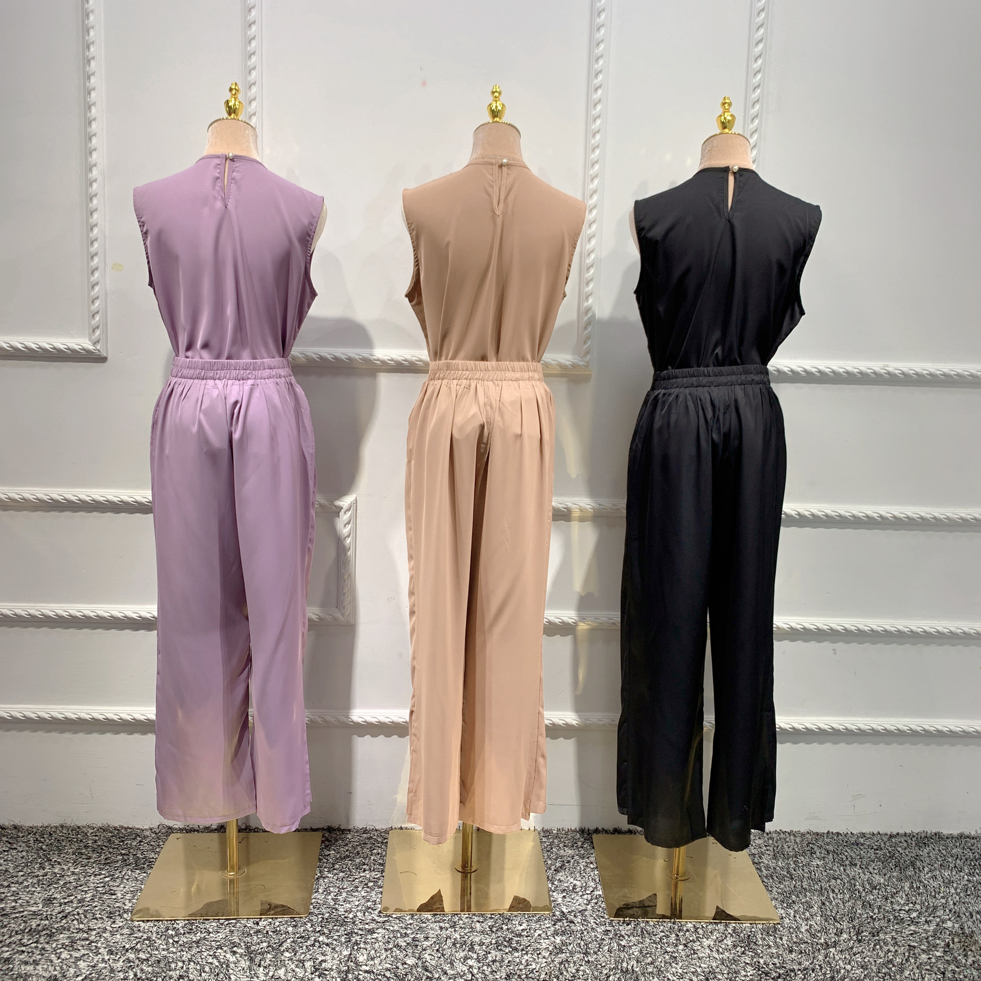 Pants Solid Color Women Dubai Maxi Thobe Prayer Burka Islamic Clothing Modest Top Suit 2pieces Kurti 2022 Two Piece Muslim Blouse Set