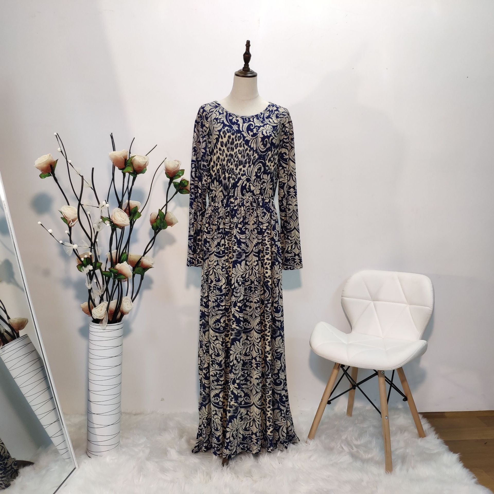 Modest Plus Size Retro Printed Dress Bohemian Muslim Islamic Abaya Maxi Dress