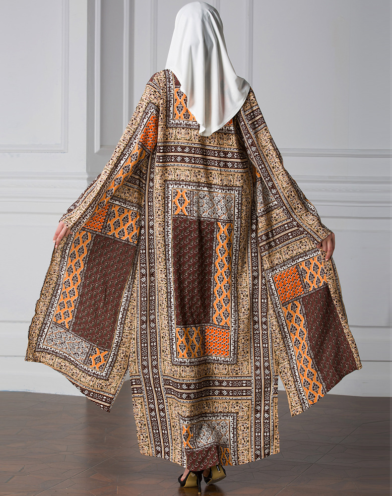 Muslim Arab Fashion Robe Hui Long Coat Loose Large Size Paris Bead Retro Long Sleeve