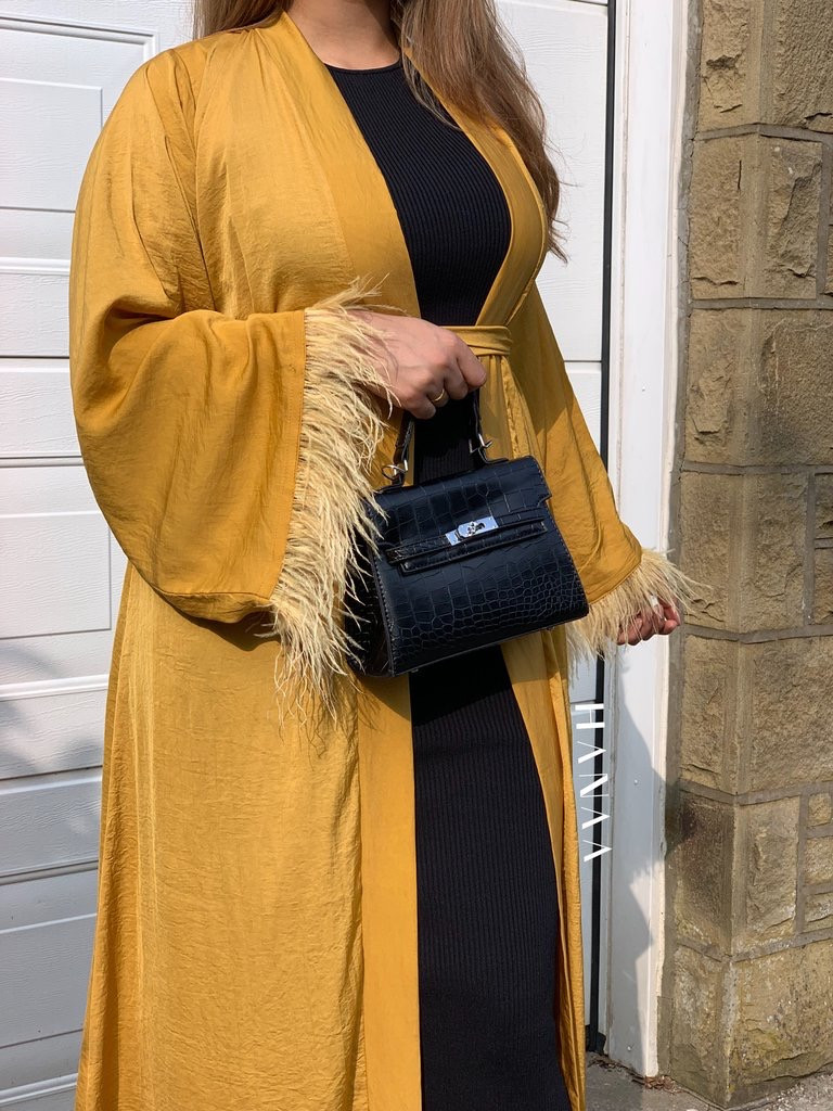 SIPO Luxury Royal Satin Closed Abaya Champagne Gold Intricate Lace with Diamante And Embellishments