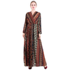 Muslim Printed V-neck Robe Modest Fashion Middle East Islamic Maxi Dresses Loose Abaya