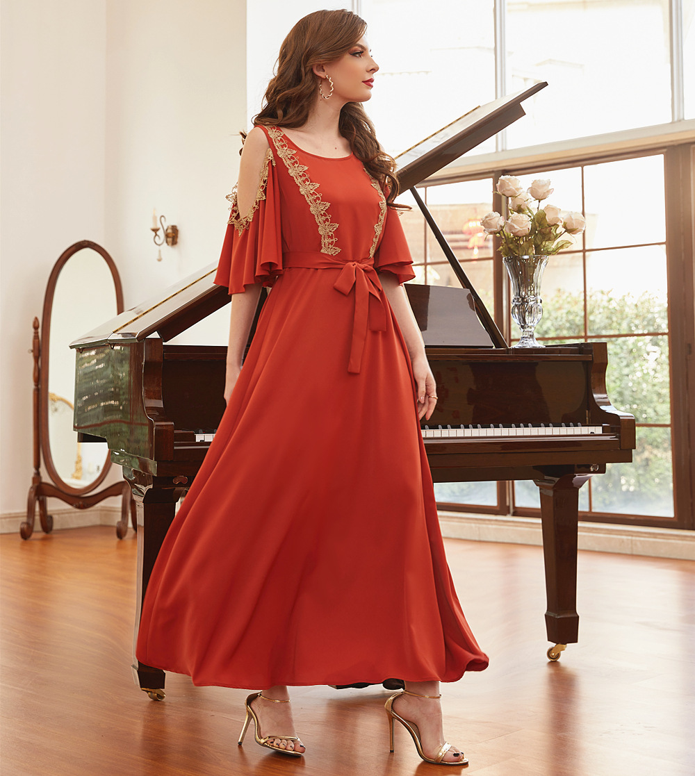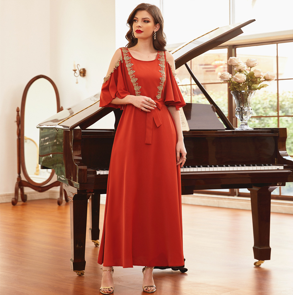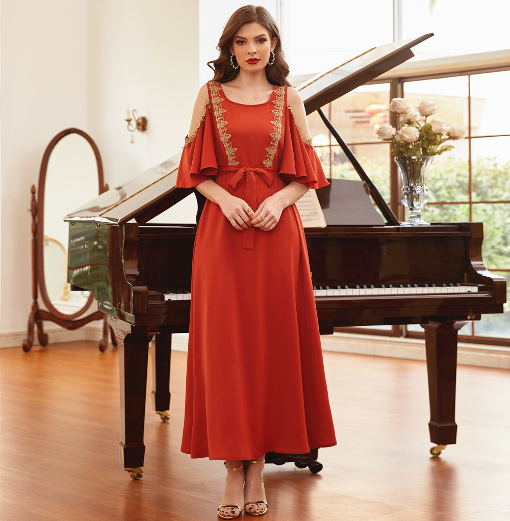 SIPO Custom Dubai Spring/Summer Dress Solid color beautifully embroidered dress gown Elegant Abaya