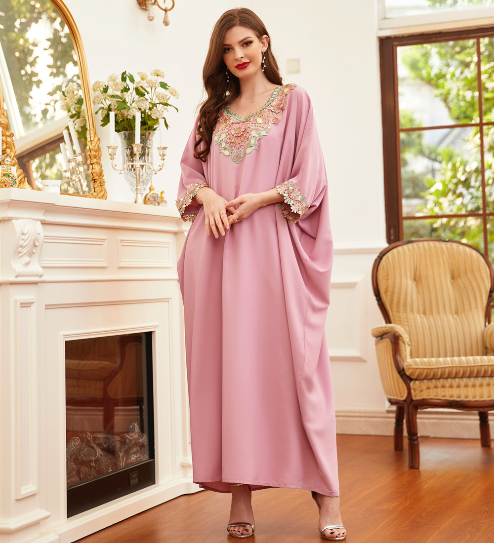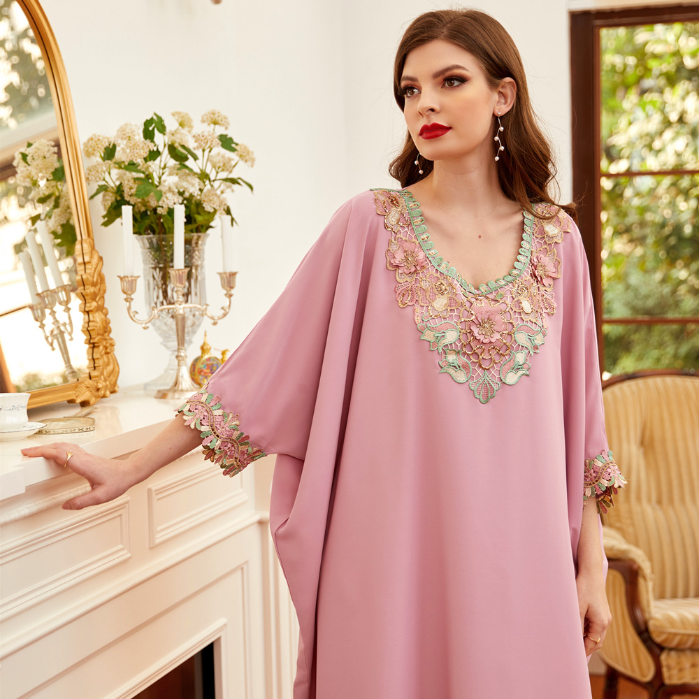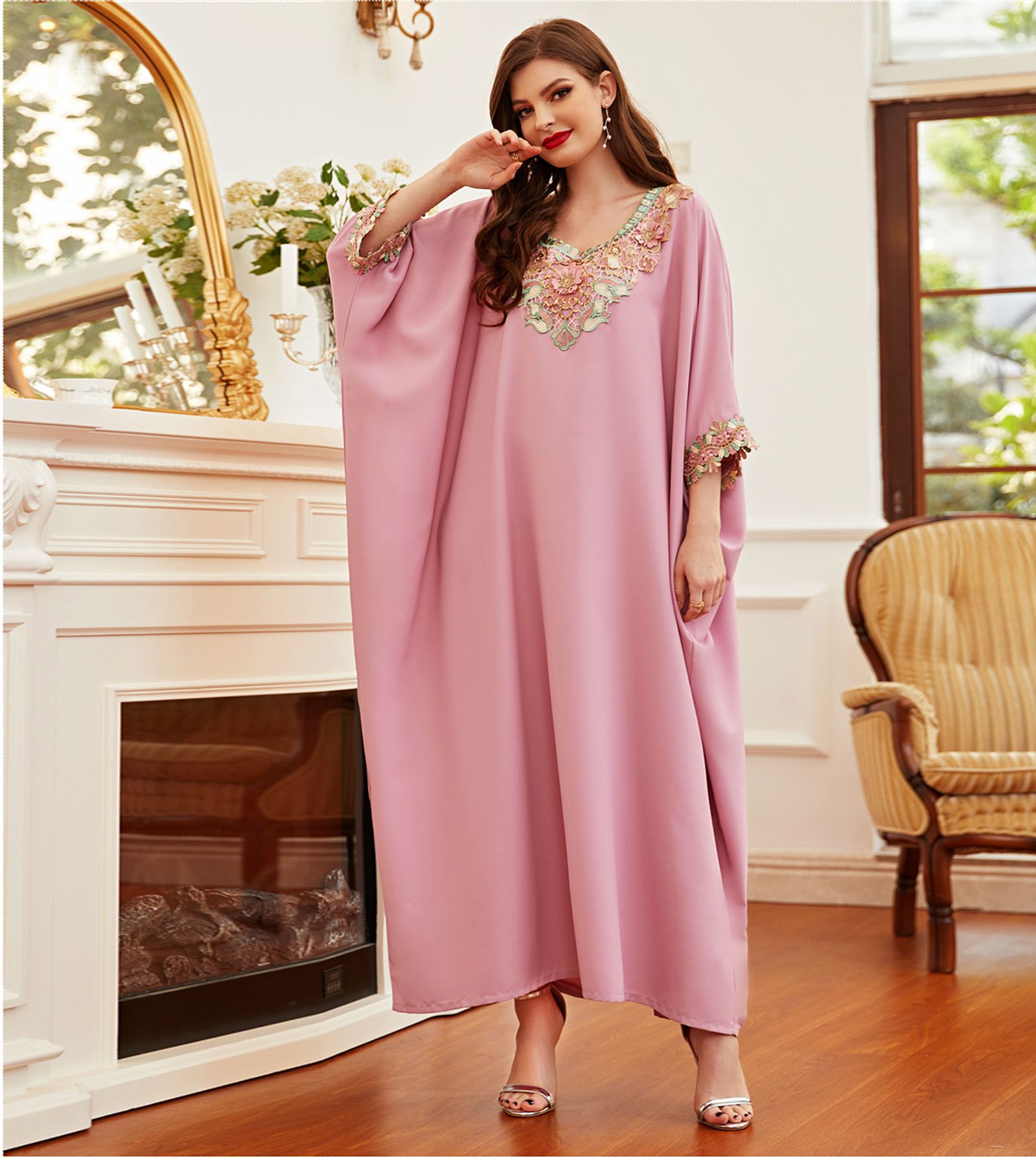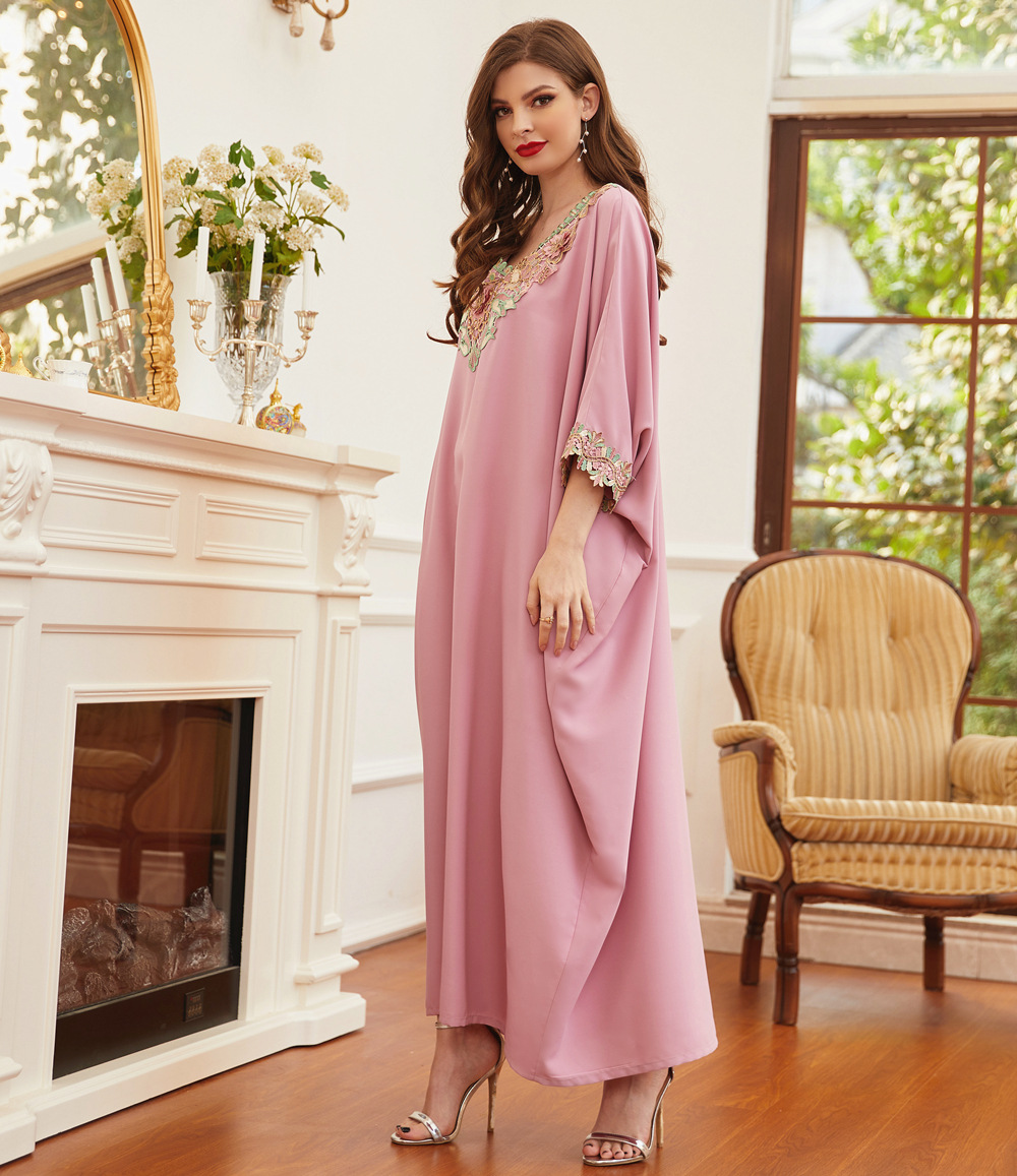 SIPO Custom Dubai Spring/Summer Dress Solid color beautifully embroidered dress gown Elegant Abaya