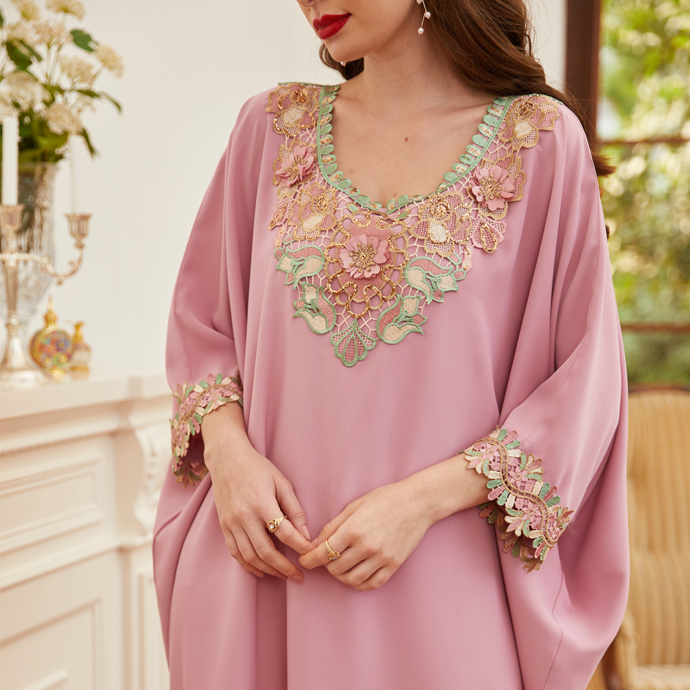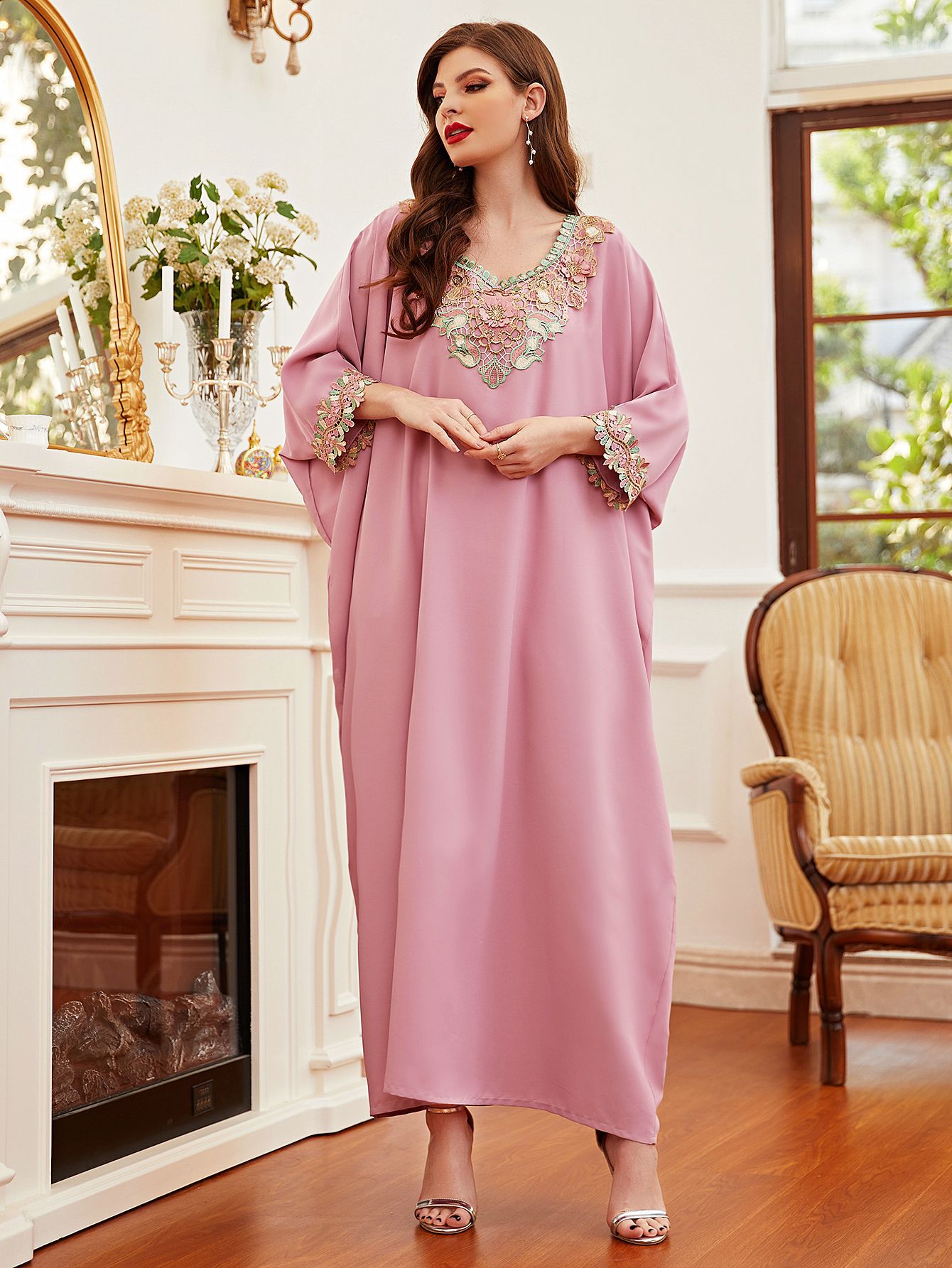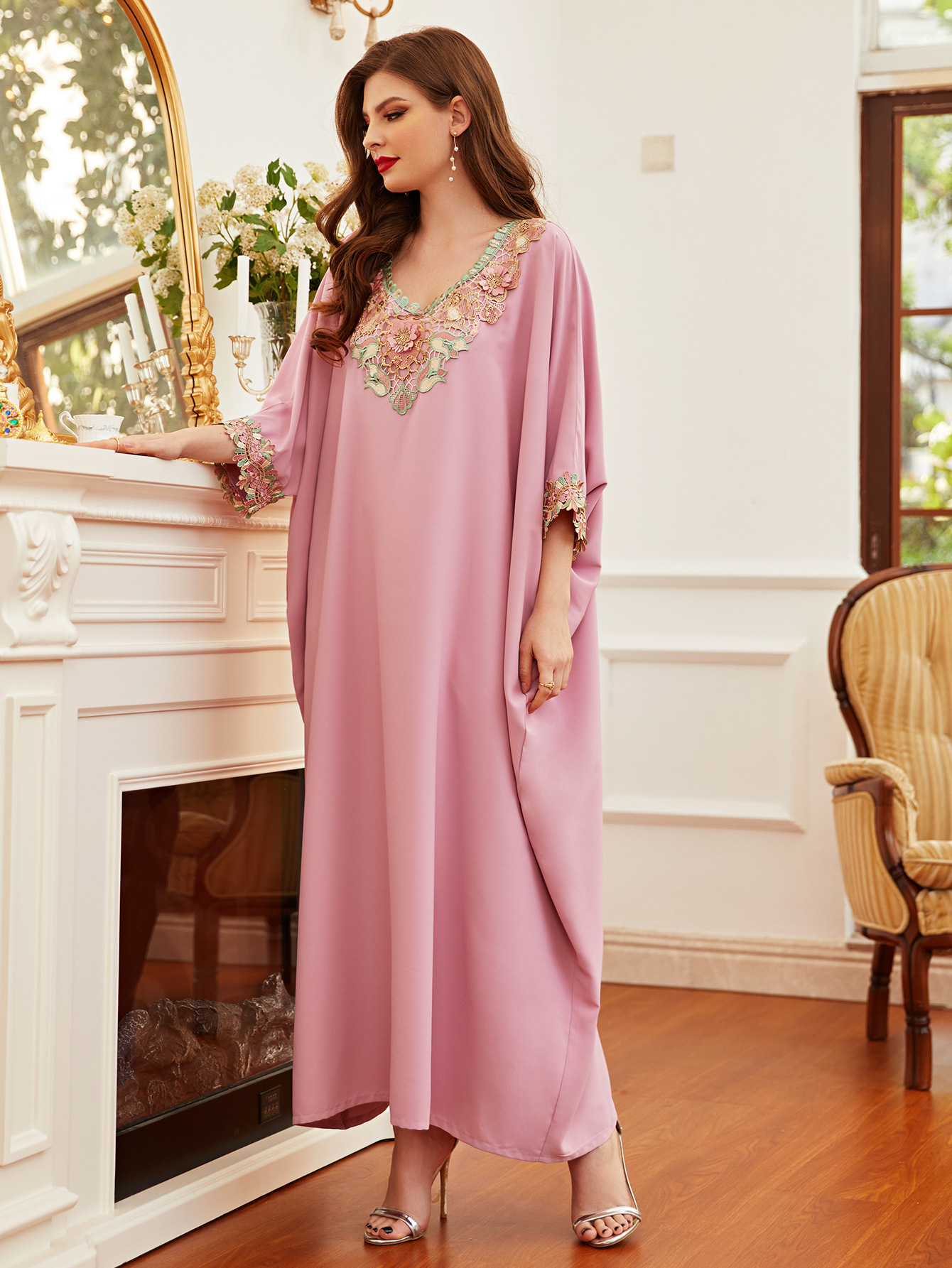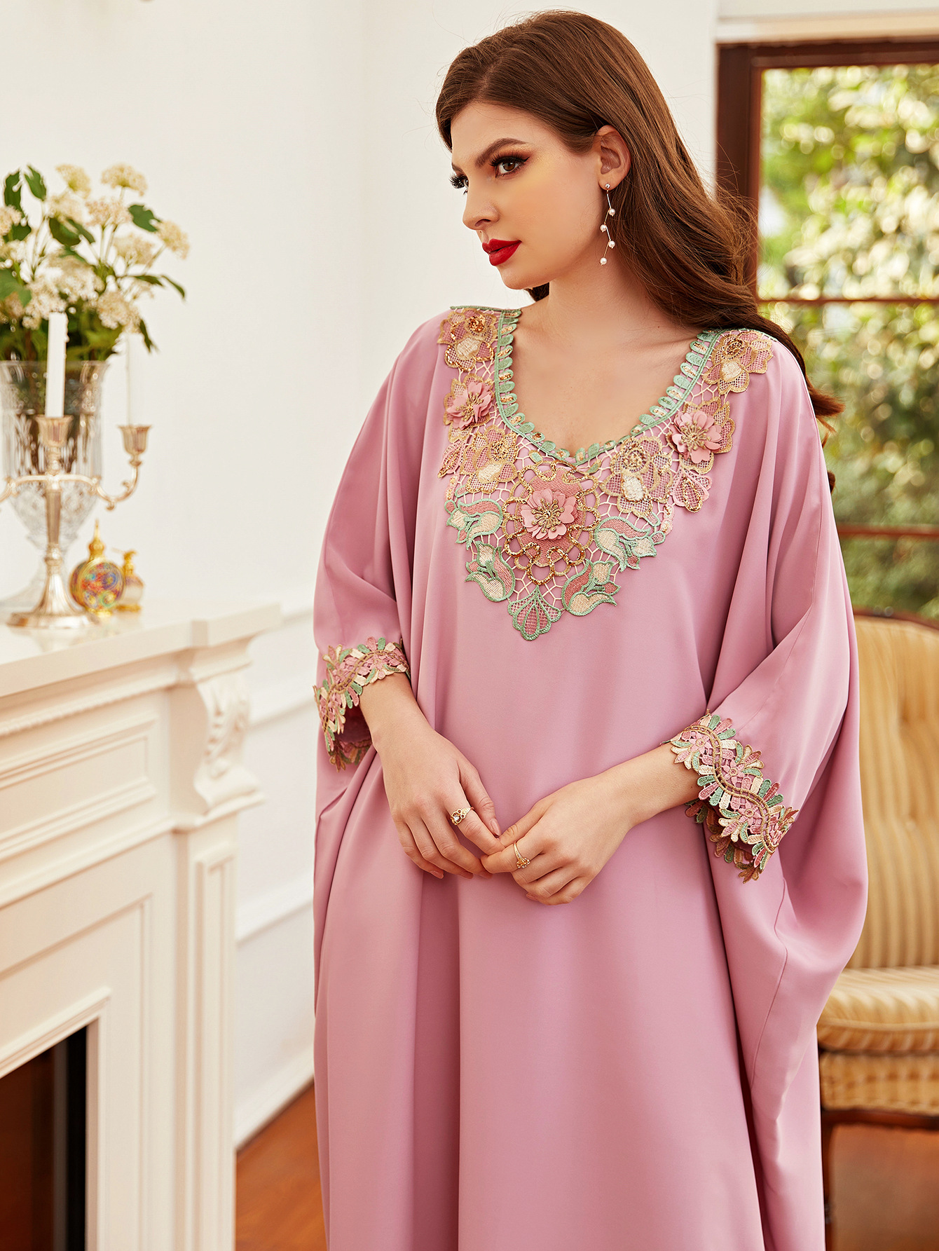 SIPO Custom Dubai Spring/Summer Dress Solid color beautifully embroidered dress gown Elegant Abaya