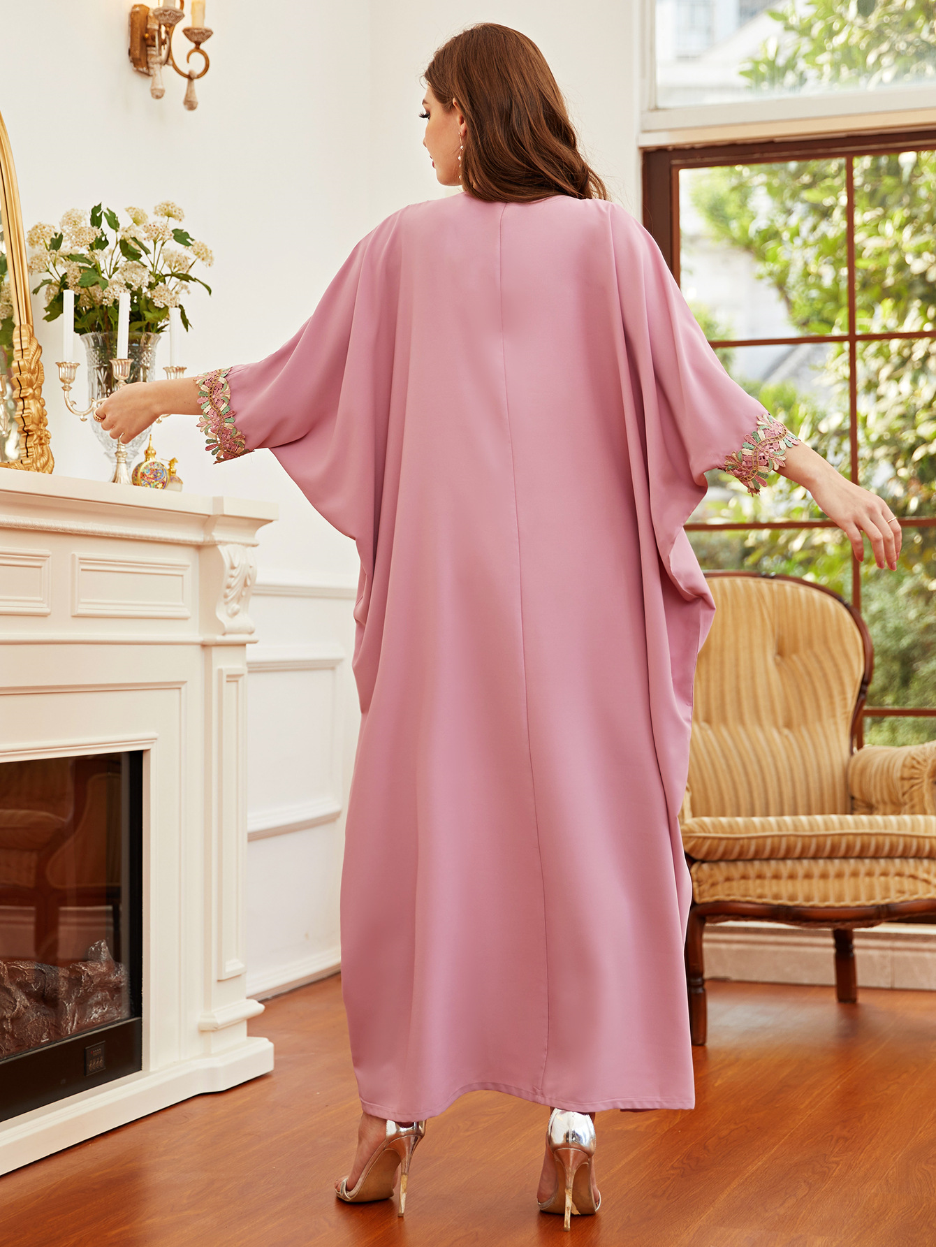 European And American Plus Size Fashion Petal-sleeved Dress Long-sleeved Embroidery Slim Abaya