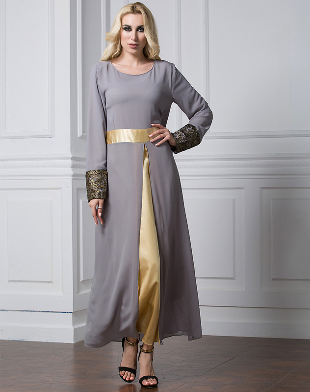 You are here:Home » Products » Abaya / Maxi Dress » New Fashion Robe Chiffon Satin Hui Muslim Stitching Long-sleeved Dress Full Lining Plus Size
