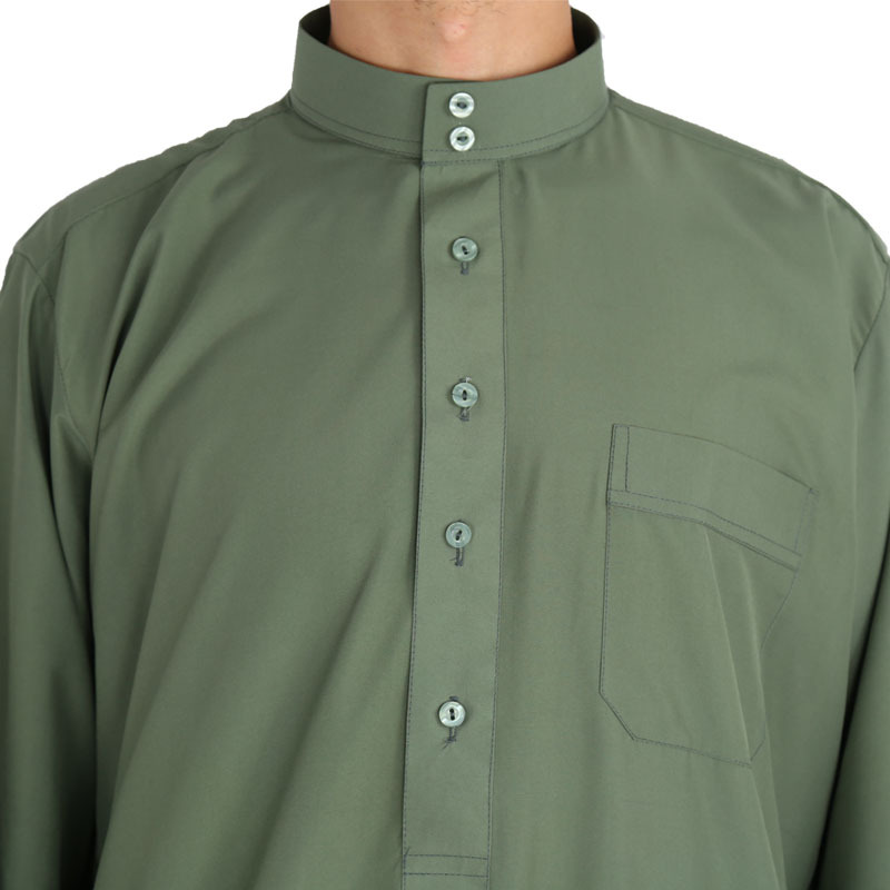 Middle East Pocket Pure Clolor Modest Muslim Islamic Round Collar Man Thobe