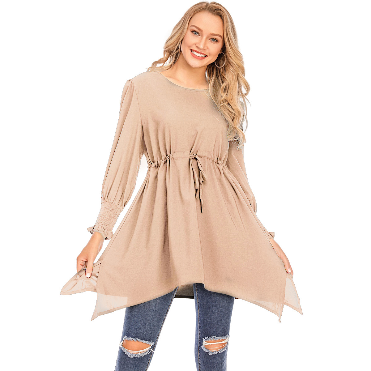 You are here:Home » Products » Abaya / Maxi Dress » New Style Simple Malaysian Turkish Elastic Band Waist Women's Solid Color Plus Size Blouse