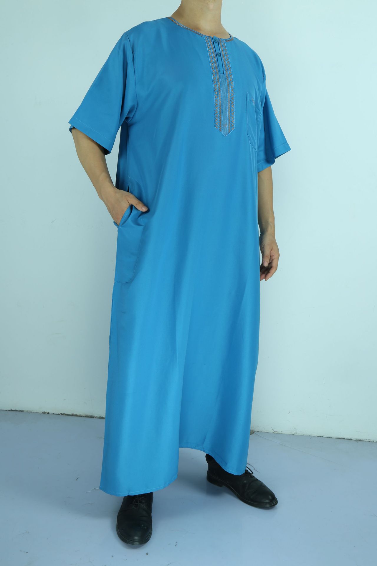 SIPO Fashion Wholesale Premium Kuwaiti Thobe With Pocket Solid Color Men Muslim Wear