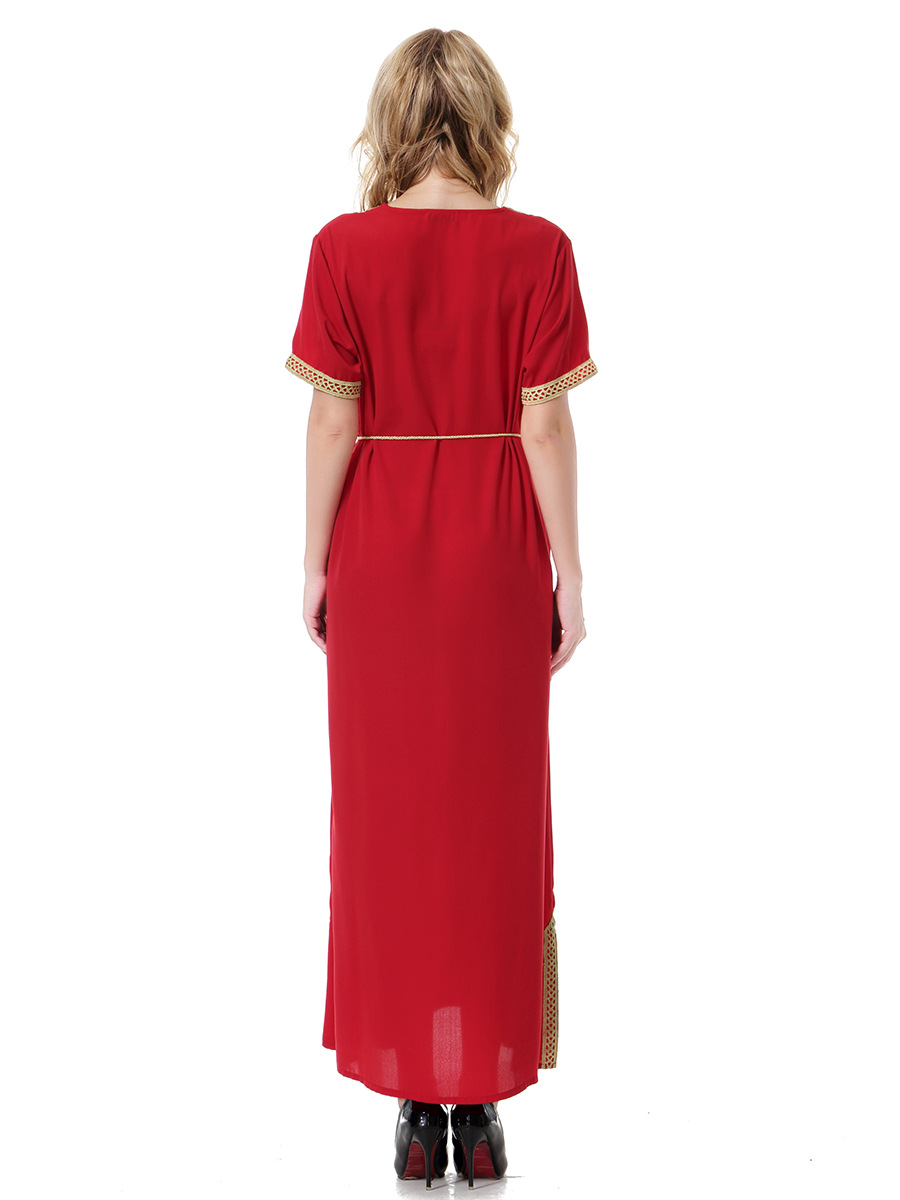 Popular Styles Breathable V-Neck Applique Short Sleeve Muslim Islamic Abaya Dresses Clothing