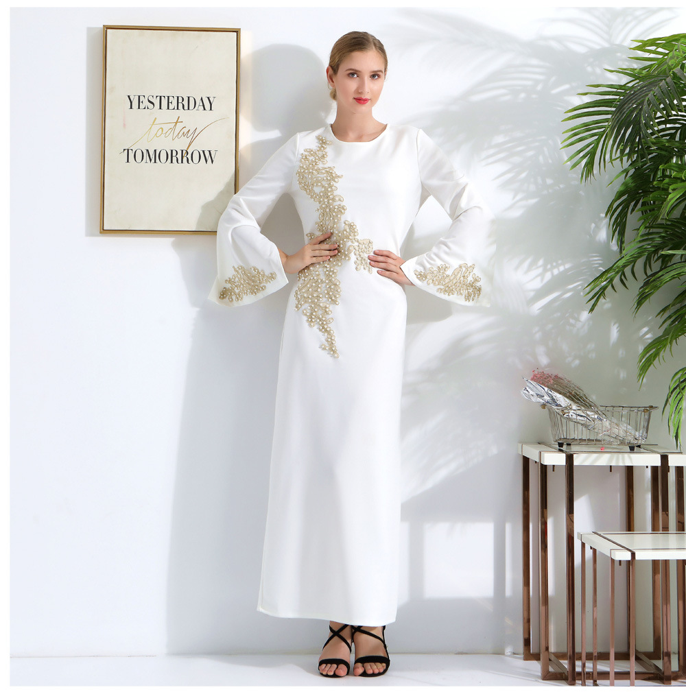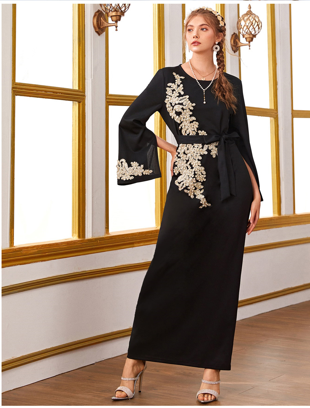 RTS Beading Embroidery Waist Tie Muslim Islamic Abaya Maxi Dress