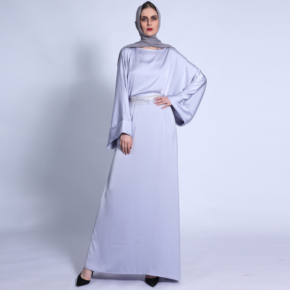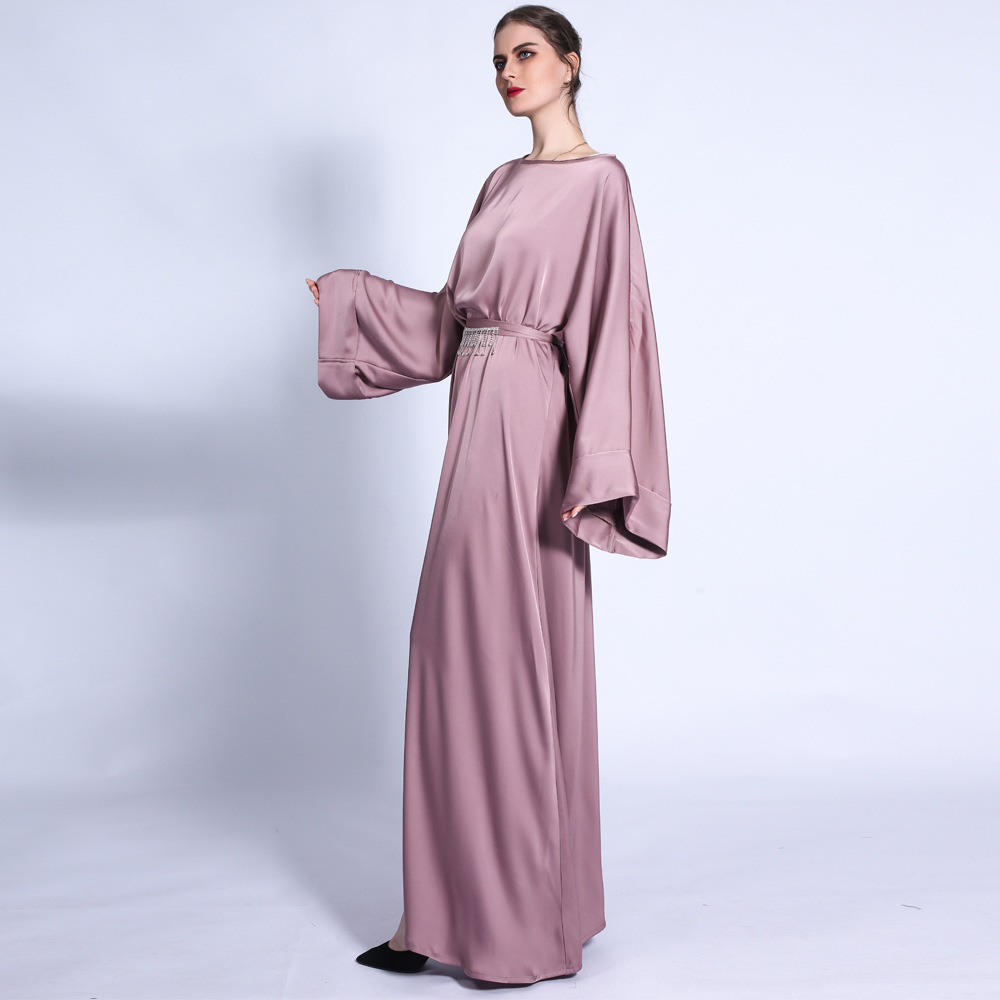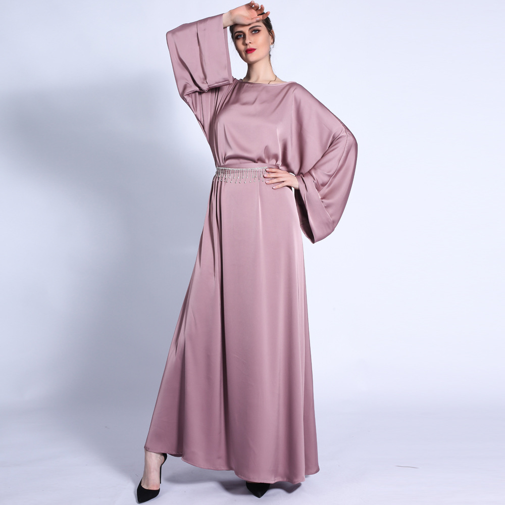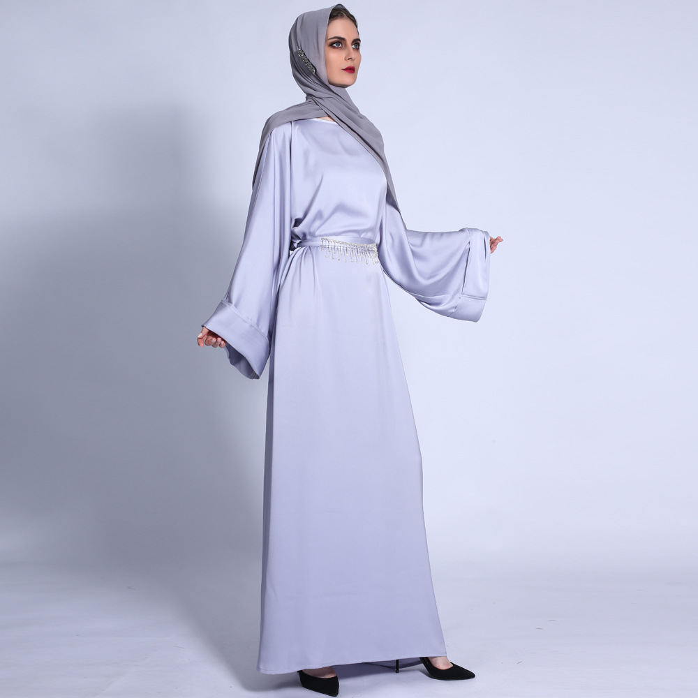You are here:Home » Products » Abaya / Maxi Dress » Ramadan Autumn Matte Solid Color Loose Dress Fringed Diamond Belt Long Skirt Muslim Female Cross-border