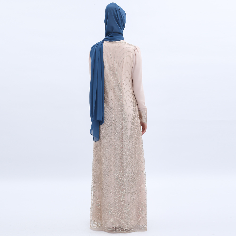 You are here:Home » Products » Abaya / Maxi Dress » Ramadan Cross-border Dubai Dress Bronzing Mesh Muslim Women's Long Skirt Breathable Summer A-line Skirt on Behalf of Hair
