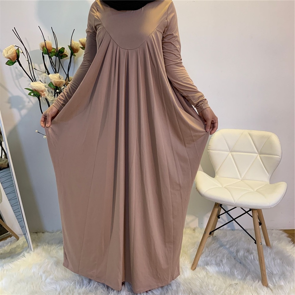 Ramadan Muslim Women's Maxi Dress Pure Color Shirring Modest Islamic Abaya