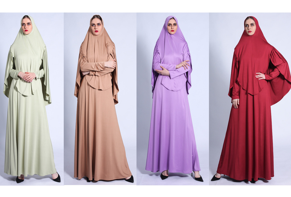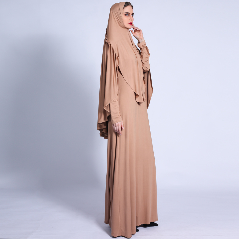 You are here:Home » Products » Abaya / Maxi Dress » Ramadan spring pleated turban suit big swing dress retro Muslim solid color robe issued on behalf of