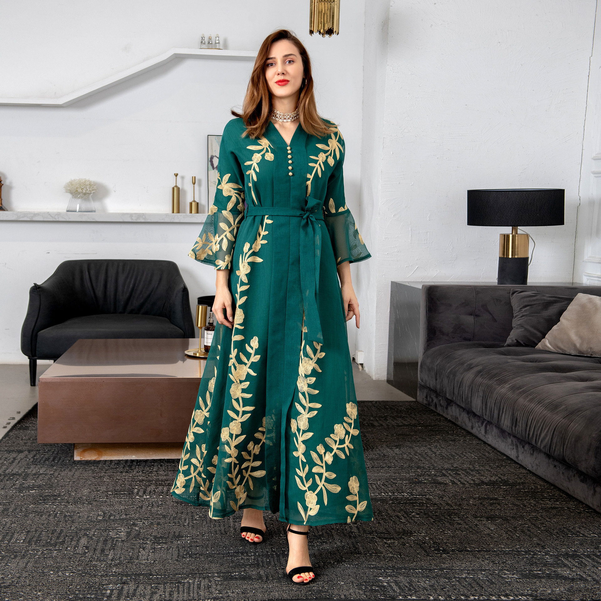 SIPO Custom Dubai Spring/Summer Dress Solid color beautifully embroidered dress gown Elegant Abaya