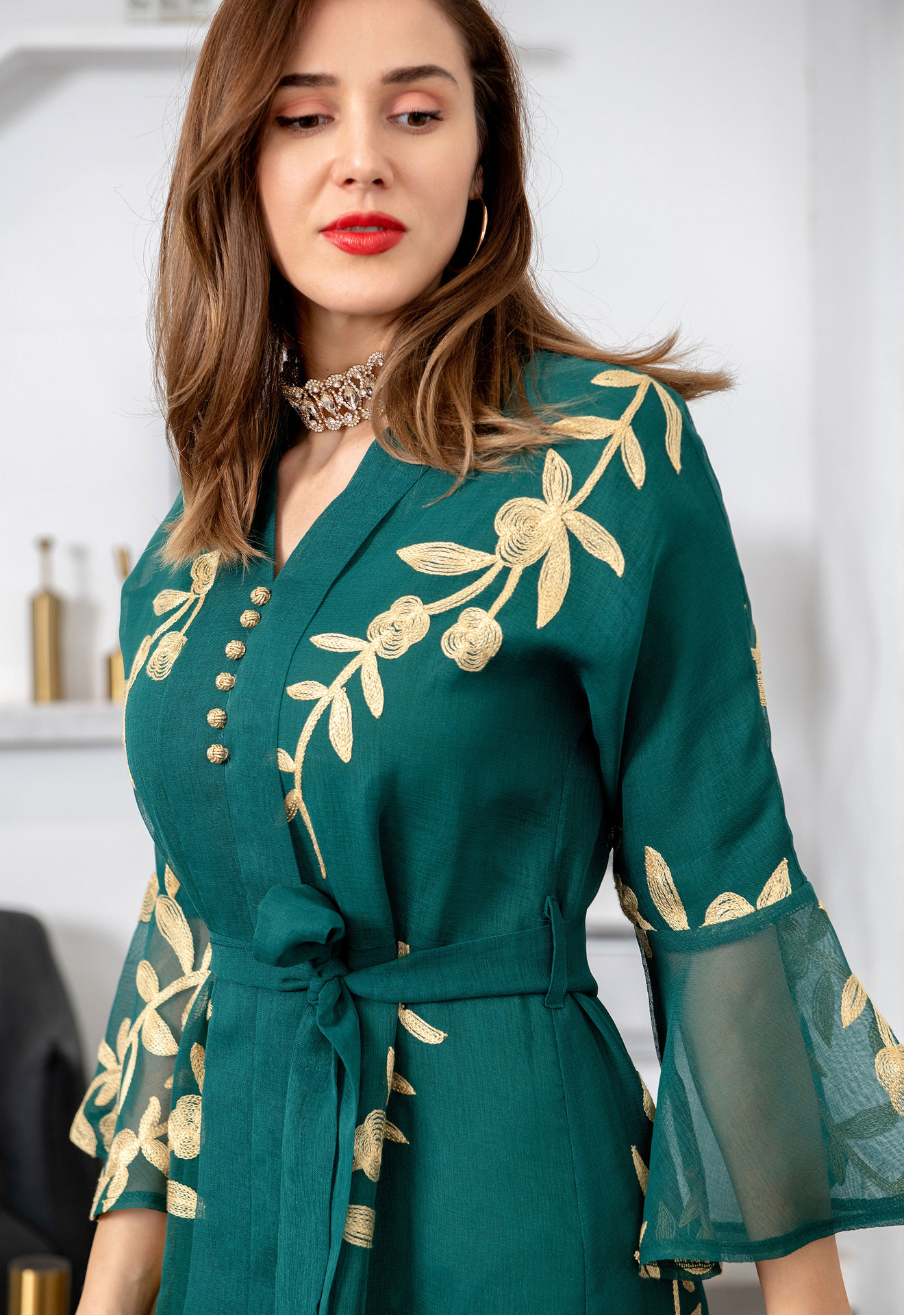 2022 Cross-border Hot Style Women's Gold Thread Positioning Heavy Industry Embroidery Cardigan Dubai Robe Kimono