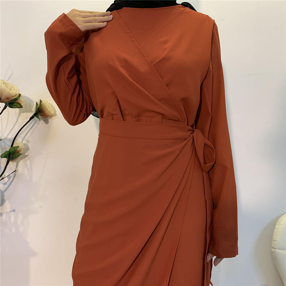 Solid Color V-Neck Stitching One-Piece Wide-Leg Pants Muslim Islamic Suit Jumpsuit