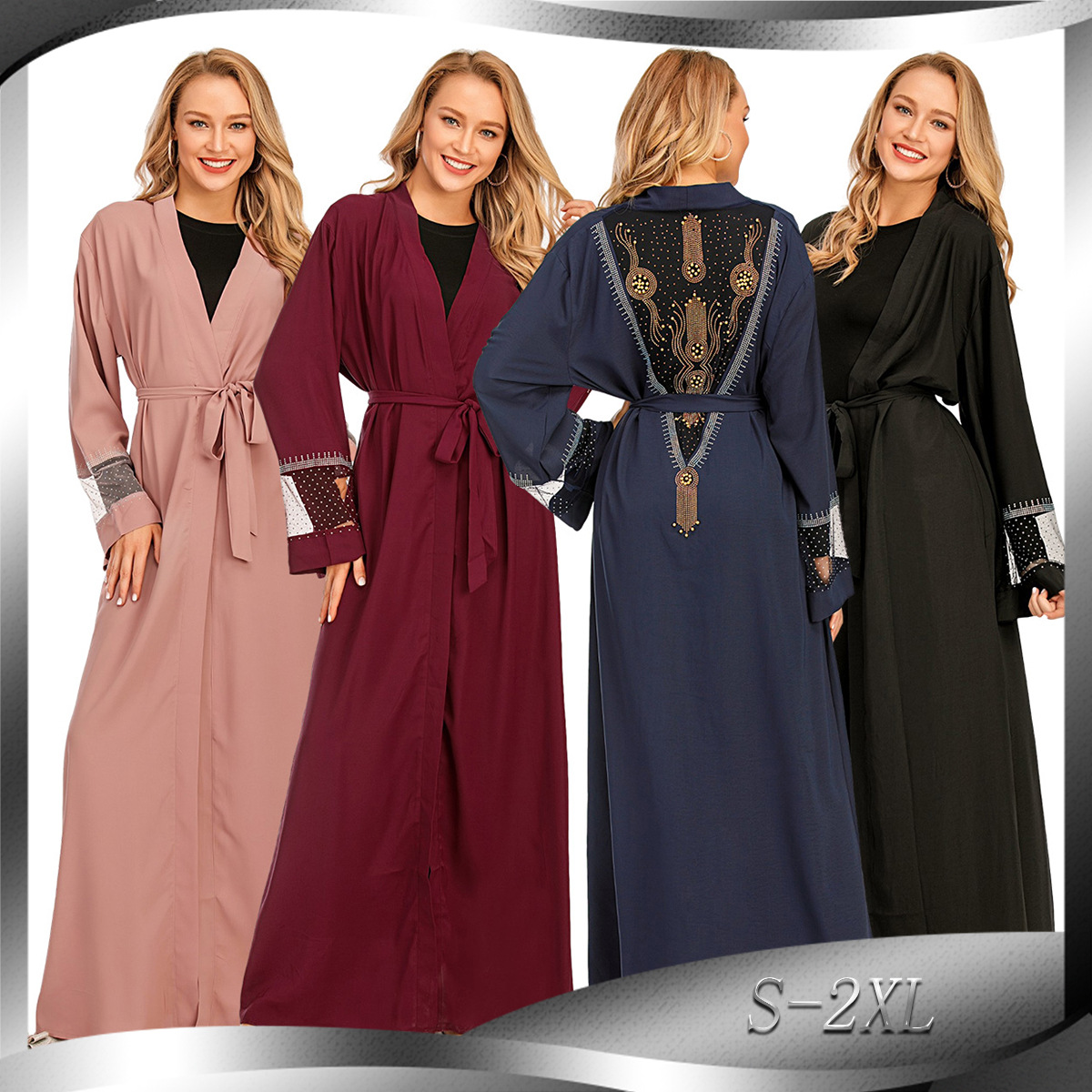 Kaftan Islamic Clothing Borka Dubai Open Embroidery Wholesale Fabric Muslim Dress Fashion Modest Kimono Abaya