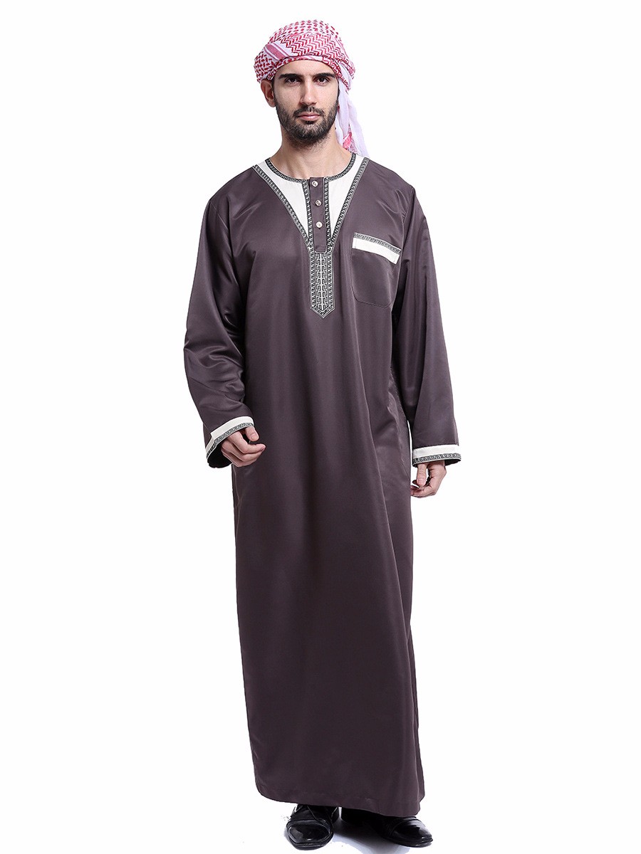 Traditional Summer Long Sleeve Muslim Islamic Clothing Robe Arab Thobes Men Daily Wear
