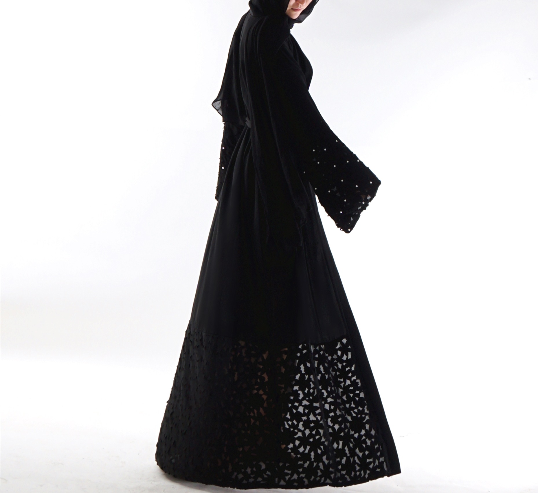 SIPO Luxury Korean Nidha Abaya with Exclusive Lace and Stone Embellishments and Matching Shawl