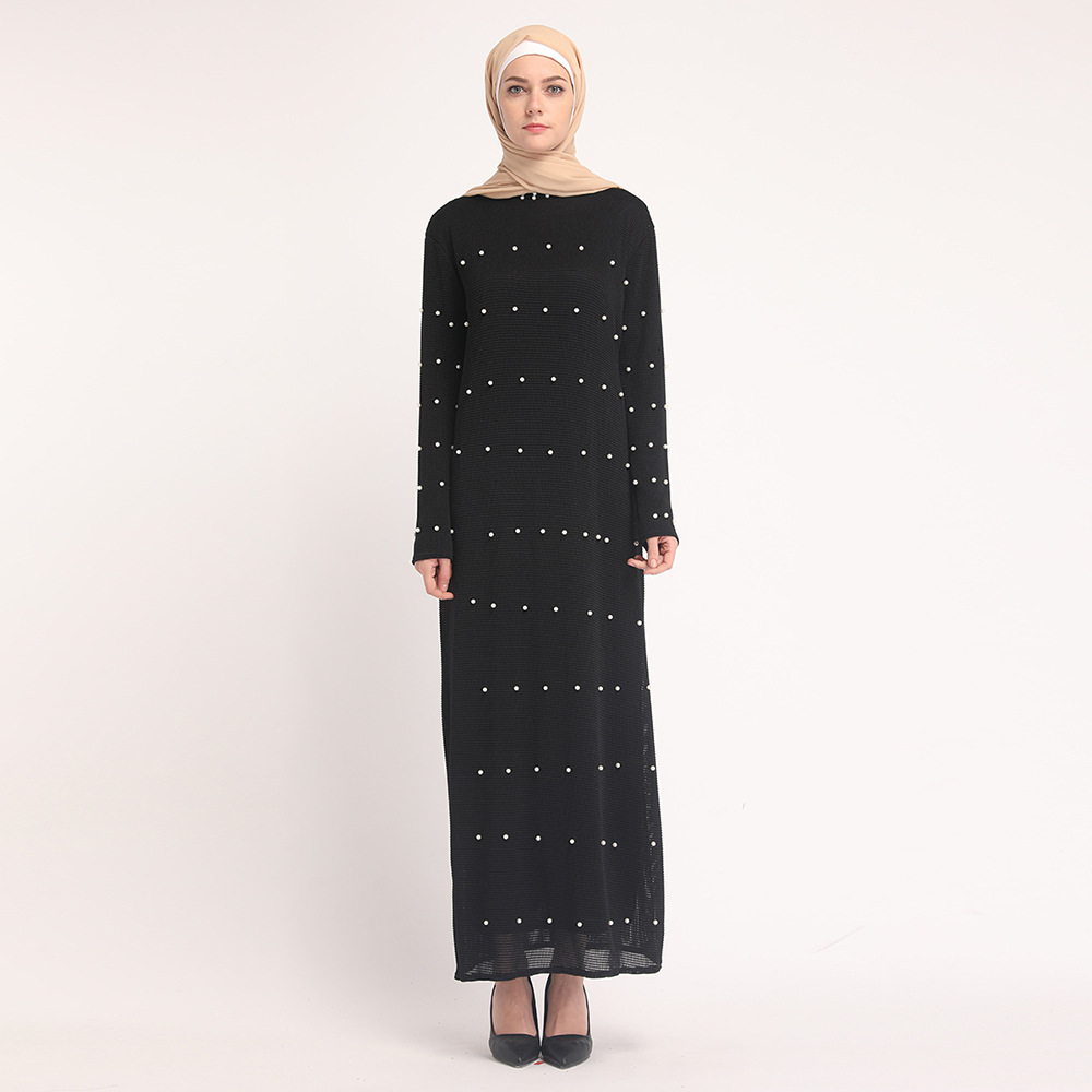 Wholesale Arabic High Collar Pearls Muslim Dresses Skirts Woman Ethnic Islamic Clothing
