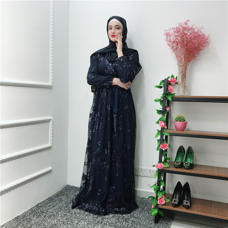 Middle Eastern Fashion New Style Women's Lace Cardigan Robe Leaf Embroidered Muslim Sequined