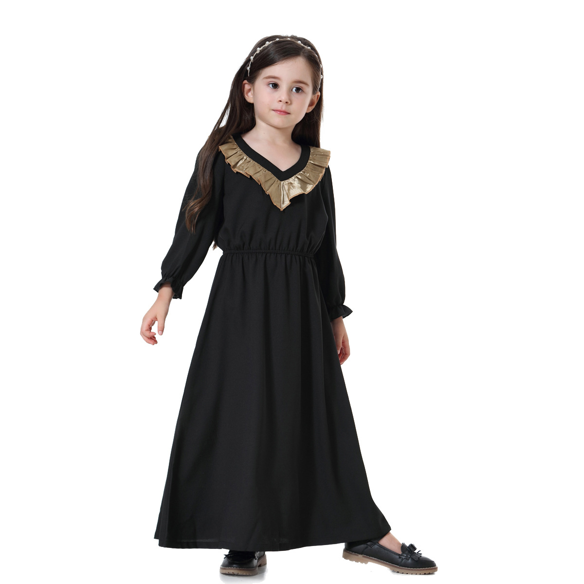Wholesale Pakistani Elastic V-Neck Long Sleeves Muslim Islamic Kids Causal Clothing Dress Girls Abaya