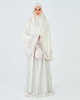 The 2-piece set includes an abaya and a matching telekung (prayer headscarf). The abaya is designed with a loose-fitting silhouette and ample coverage, ensuring modesty and ease of movement during prayers. The matching telekung completes the set, providing a coordinated and stylish look.
