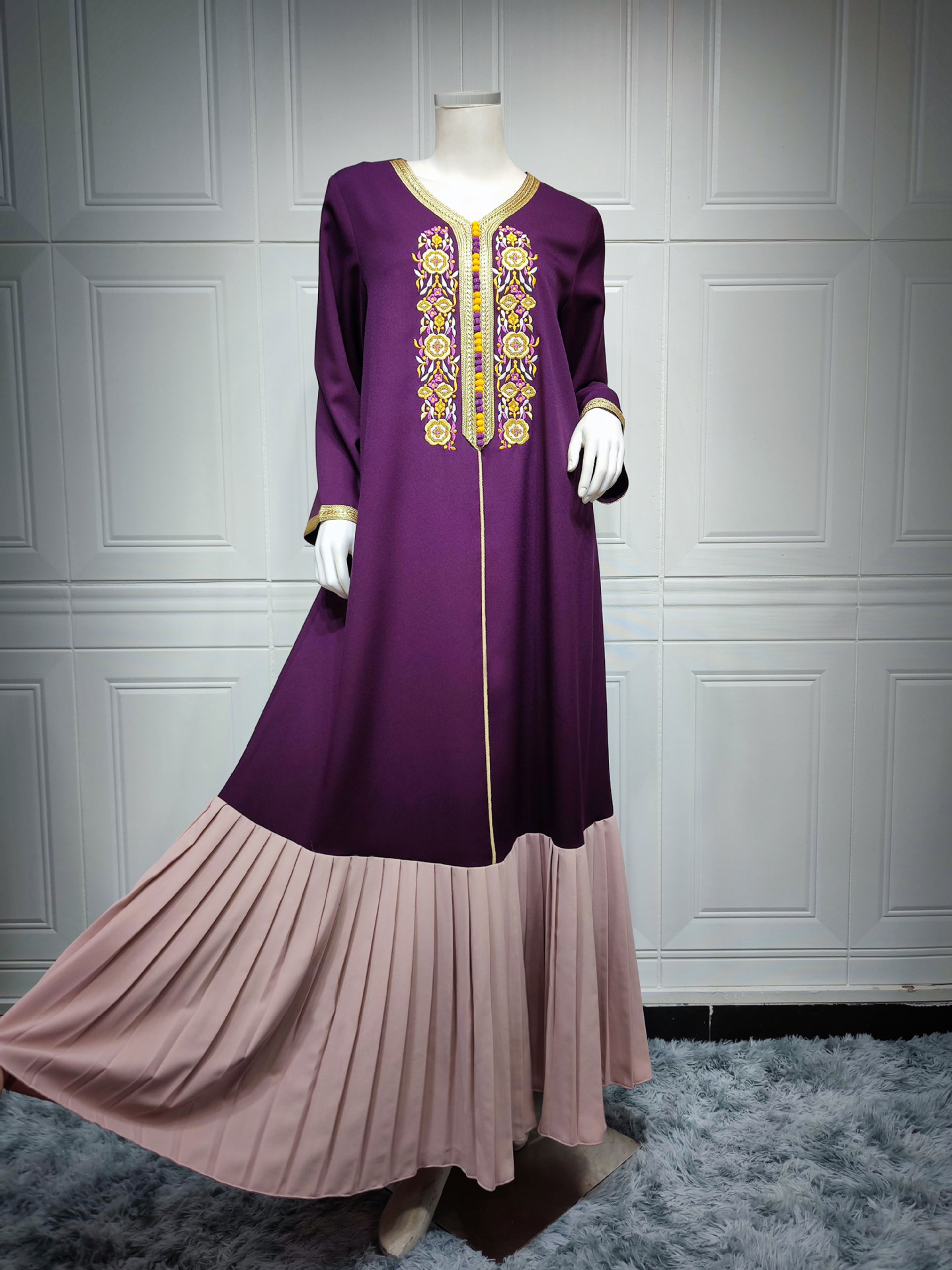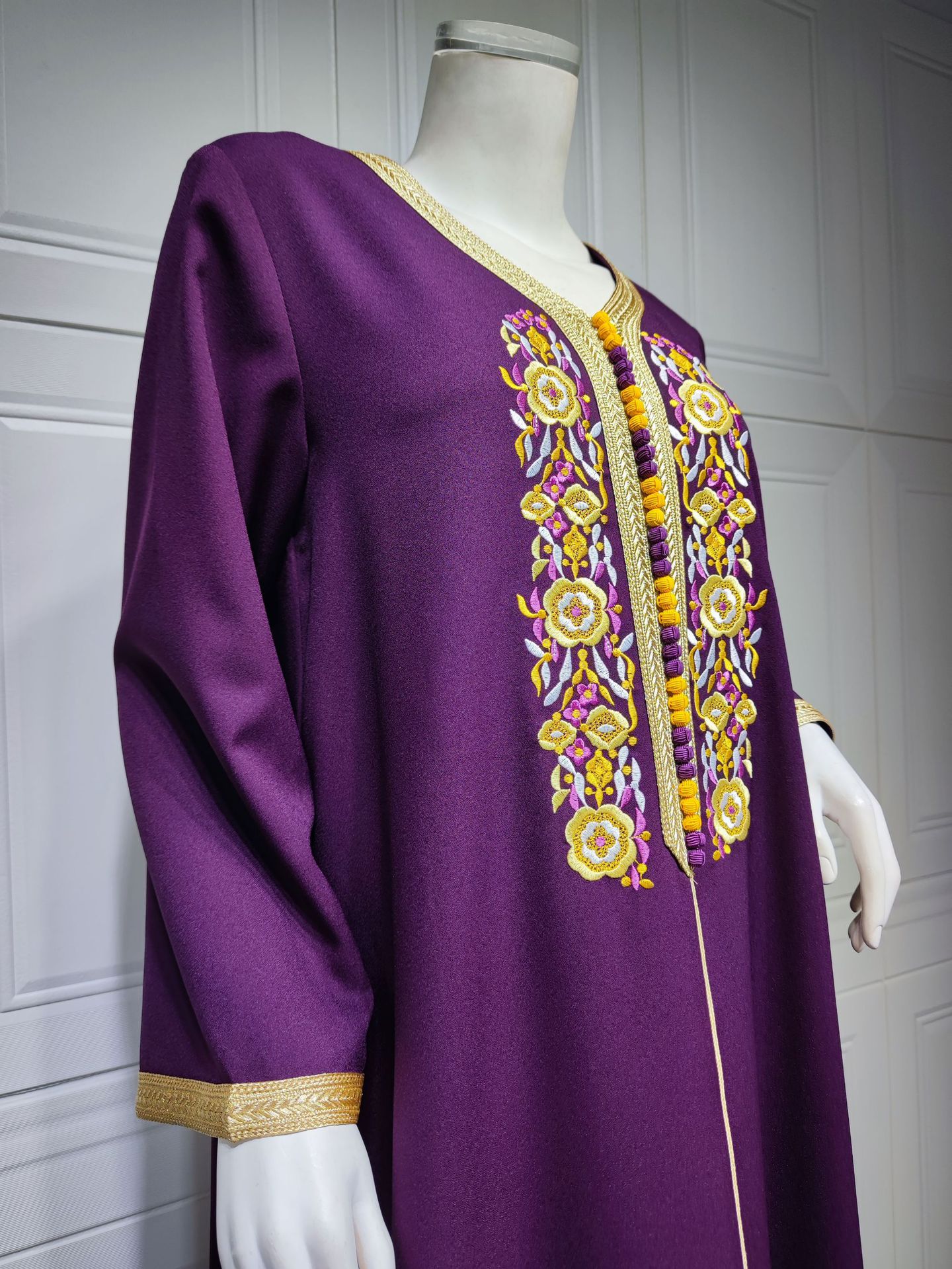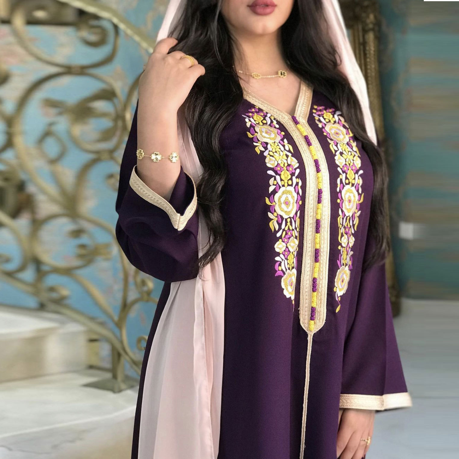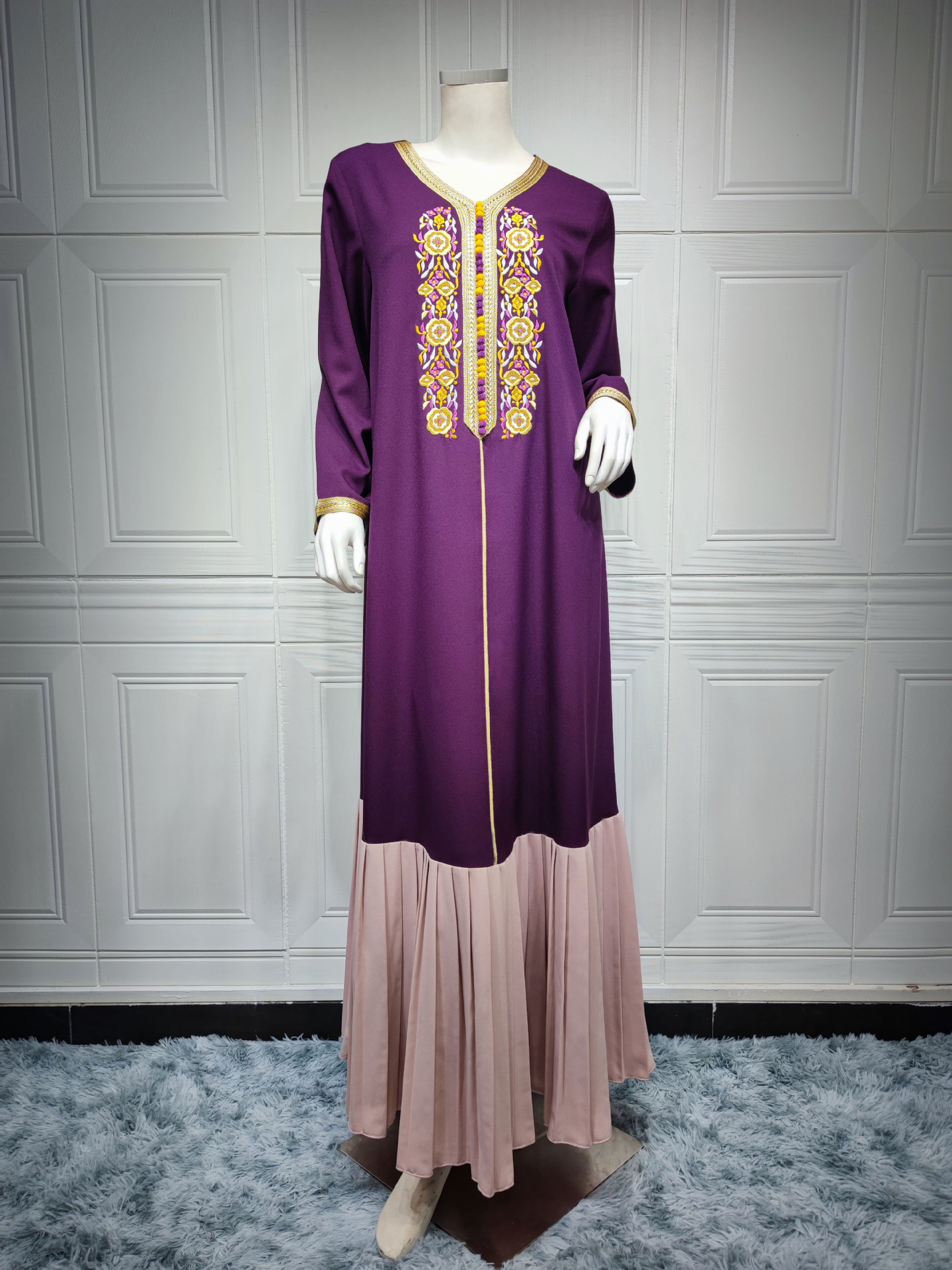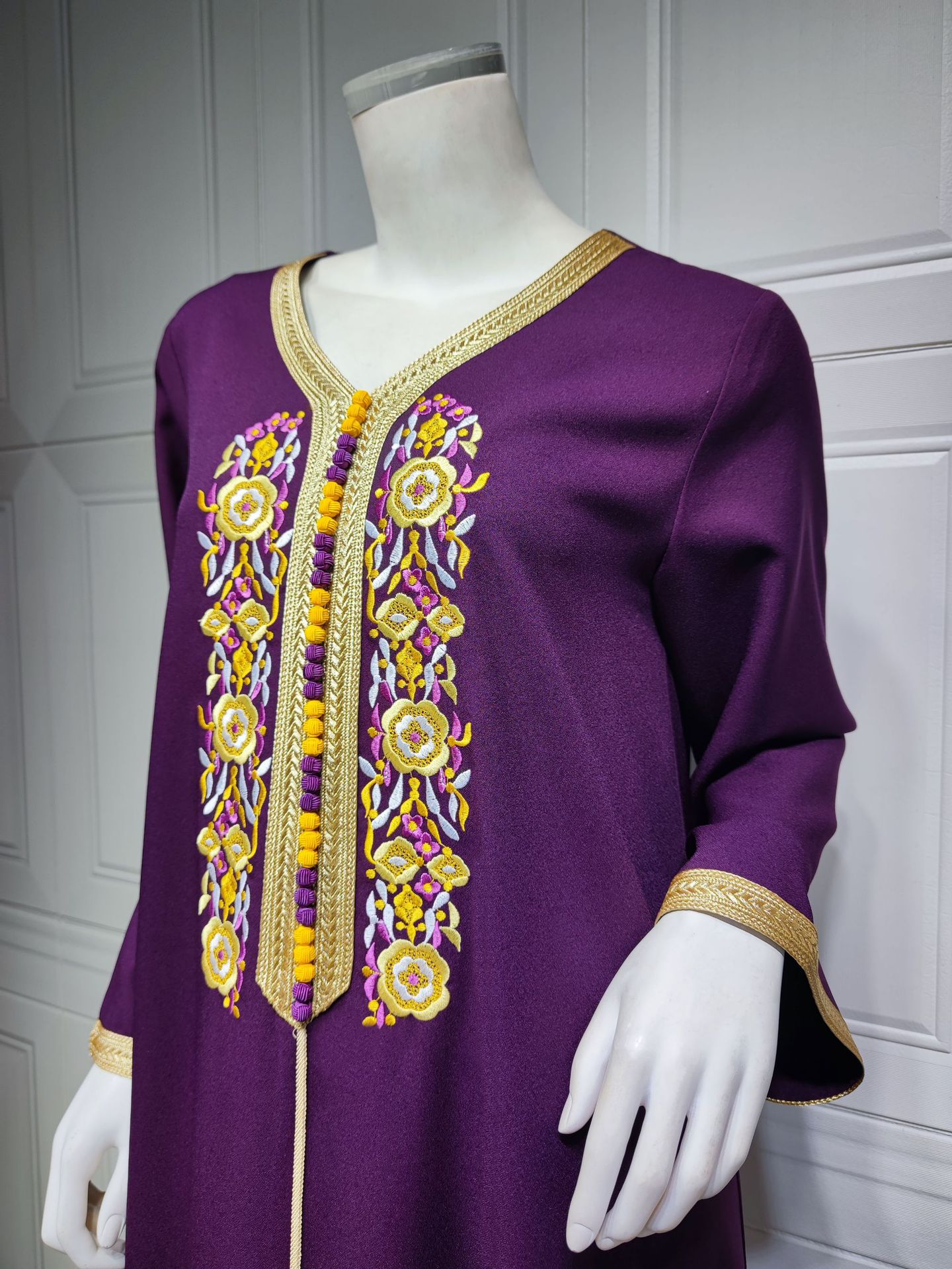 SIPO Custom Dubai Spring/Summer Dress Solid color beautifully embroidered dress gown Elegant Abaya