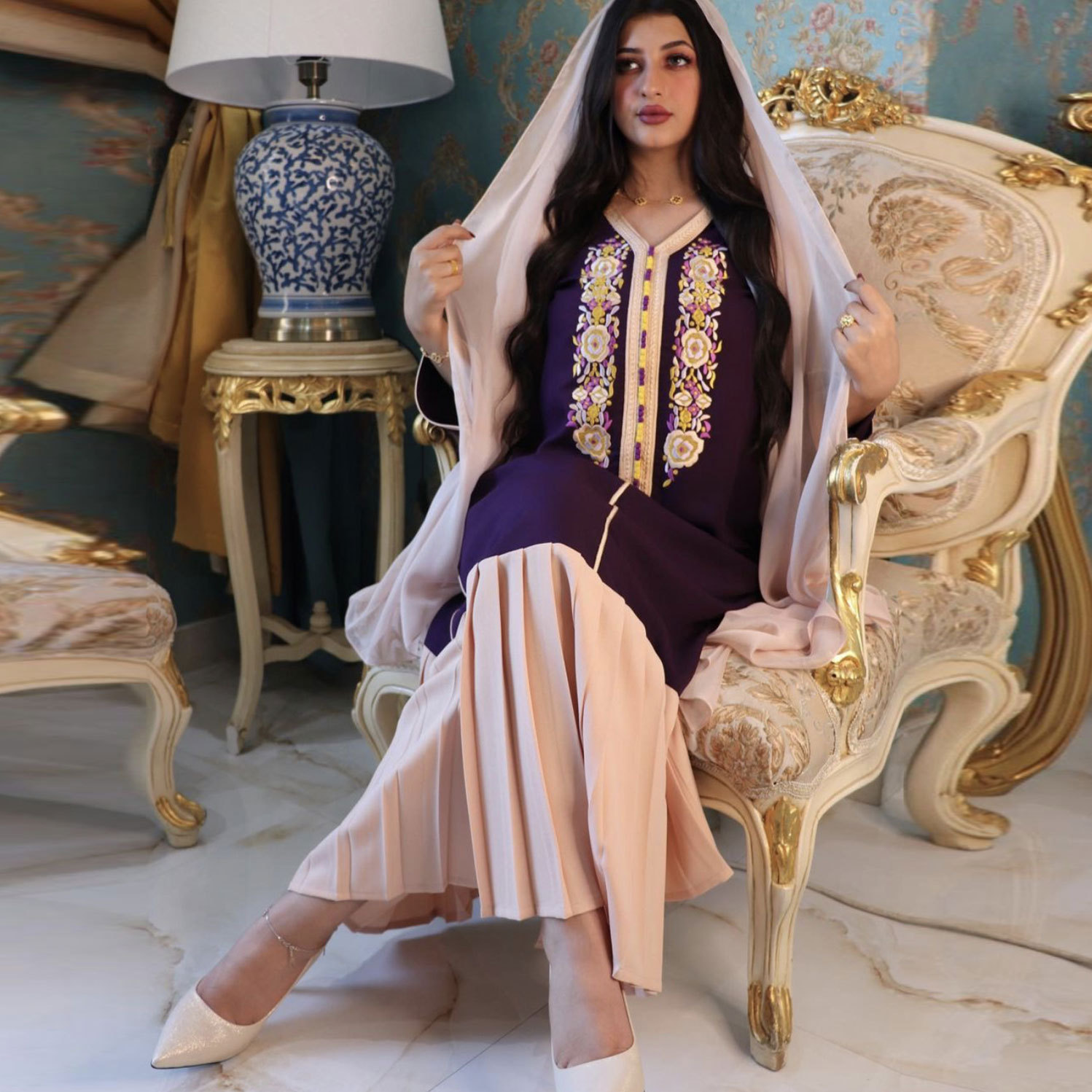 SIPO Luxury Italian Silk Abaya for Muslim Women with Handwork Embroidery And Matching Shawl