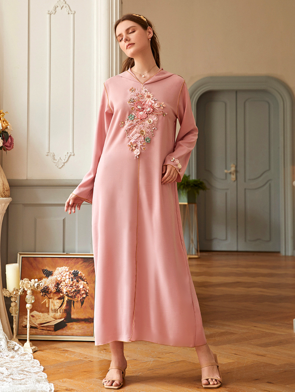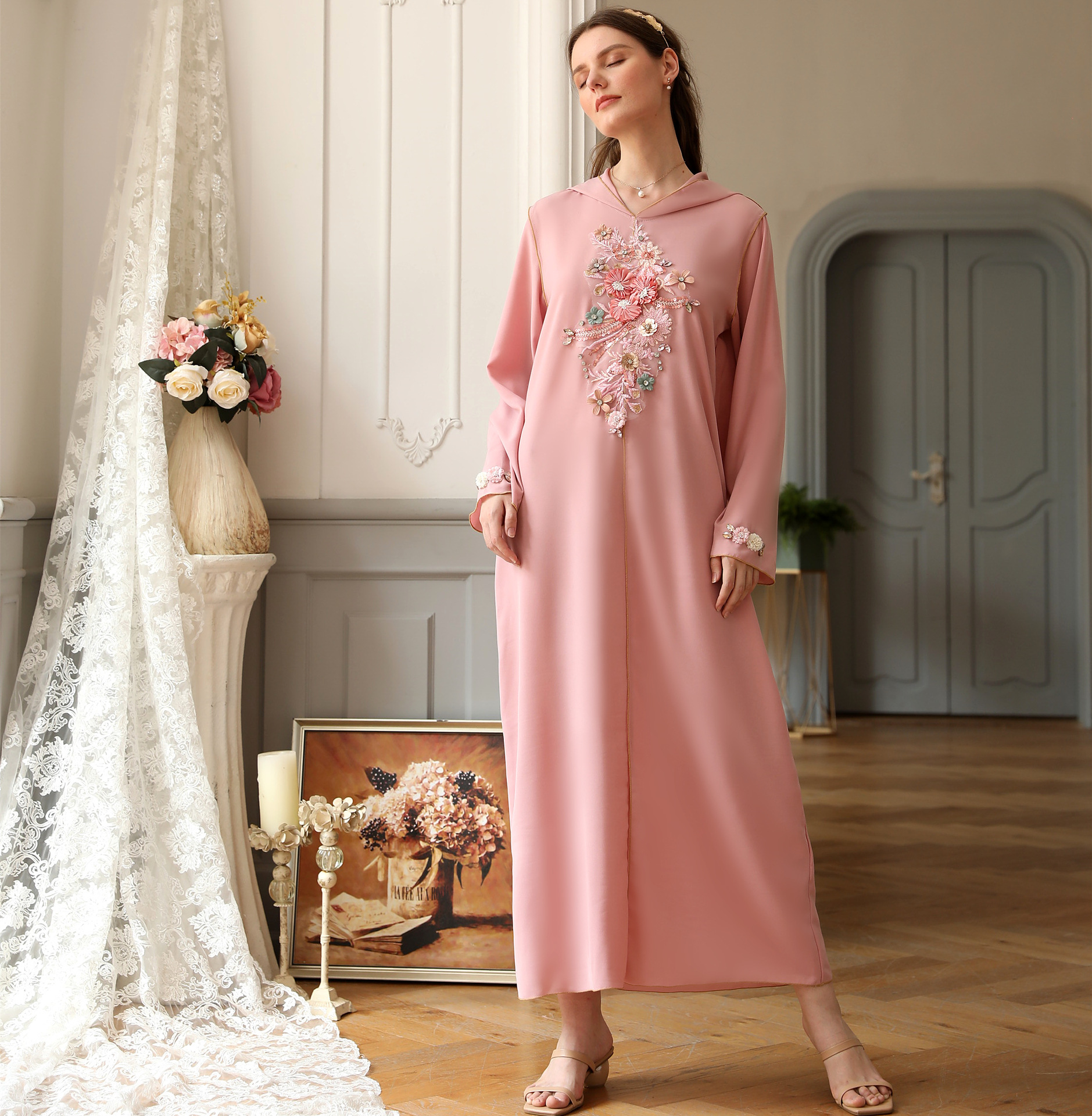 Latest Handmade Floral Hooded Muslim Islamic Abaya Modest Maxi Dress