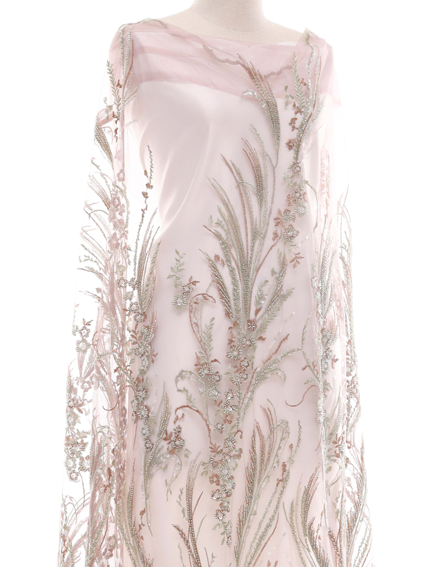 Embroidery Lace PEARL BEADED LACE IN DUSTY PINK