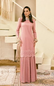 Our latest Baju Kurung features an intricate lace design with long sleeves, offering a blend of timeless beauty and modern fashion. Made from high-quality materials, this dress ensures exceptional comfort and durability, making it ideal for festive occasions and special events.