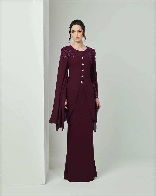 SIPO TIMELESS RAYA 2024 CHIFFON SEQUIN LACE BAJU KURUNG-WINE
